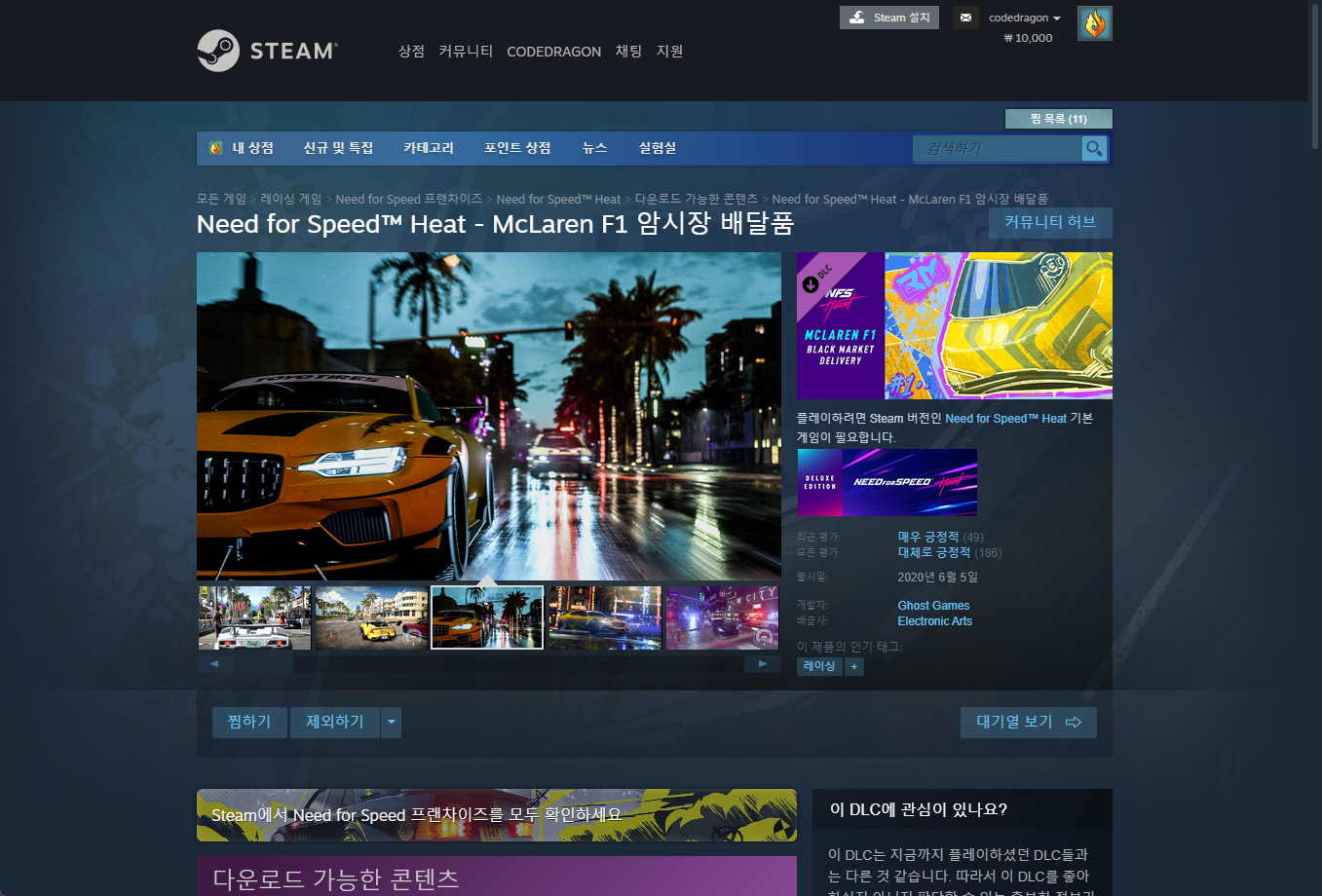 - "Need for Speed™ Heat - McLaren F1 암시장 배달품" DLC 게임 받기