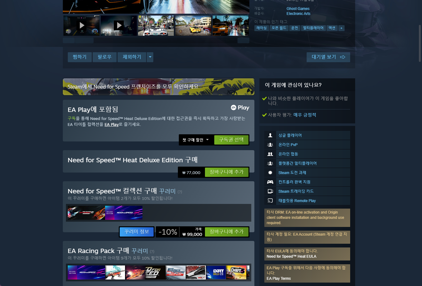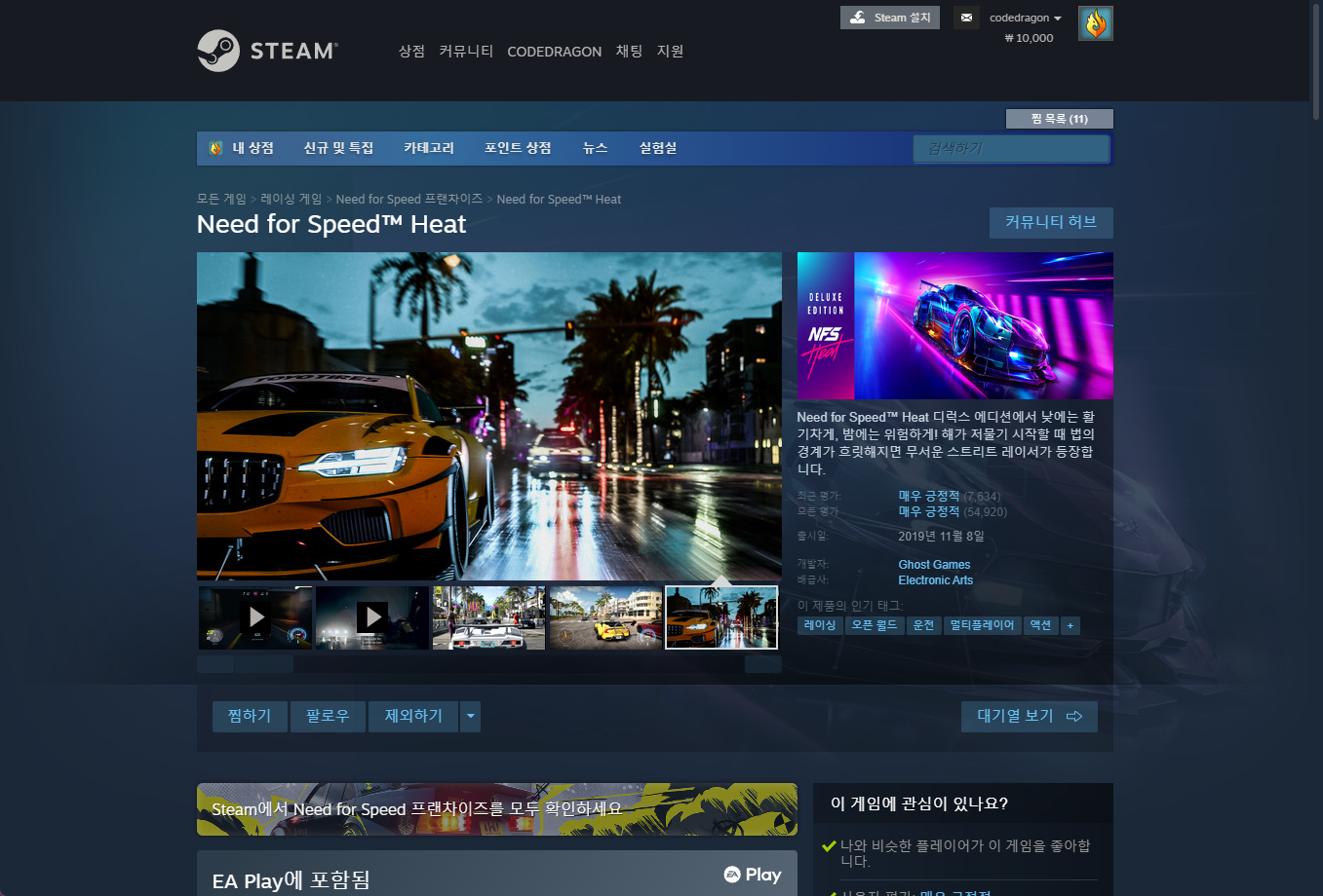 - "Need for Speed™ Heat"게임 페이지 (Base)