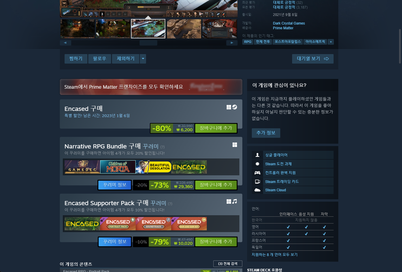 "Encased: A Sci-Fi Post-Apocalyptic RPG" - Steam 스팀 게임 페이