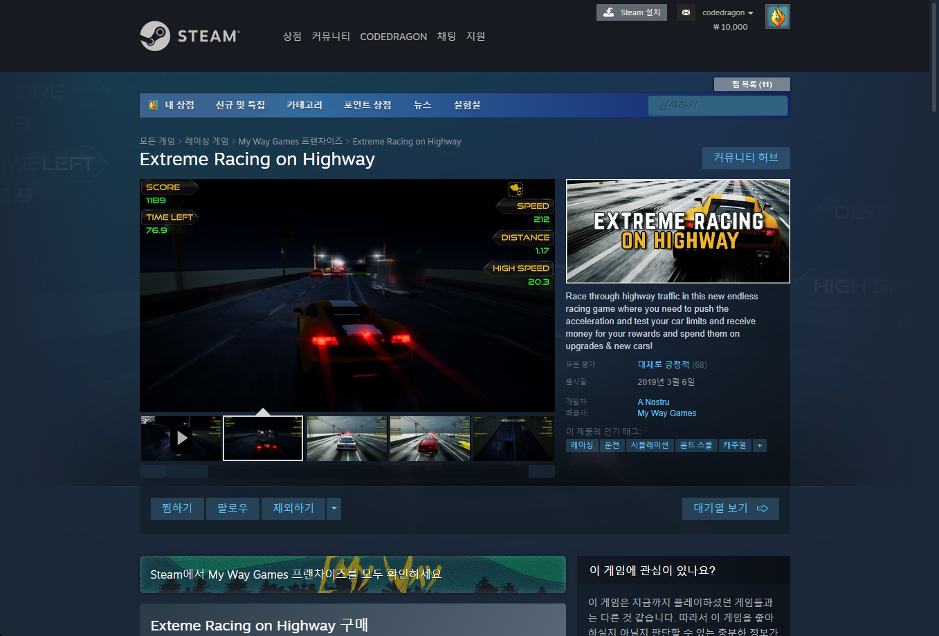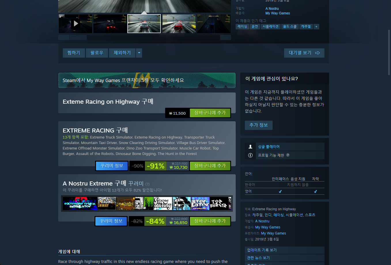 - "Extreme Racing on Highway" - Steam 스팀 페이지