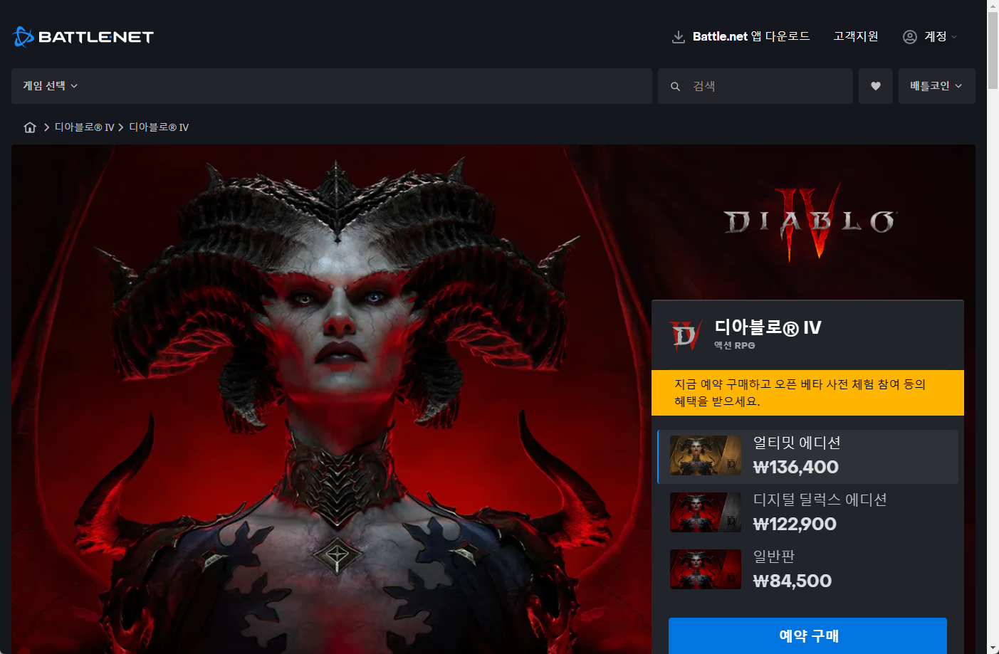 디아블로4 예약 구매하기 ft. 카카오페이 - Blizzard Diablo4 ft.kakao pay (자동 결제취소, 기존 95,900원에서 84,500원으로 일반판 가격 인하됨)