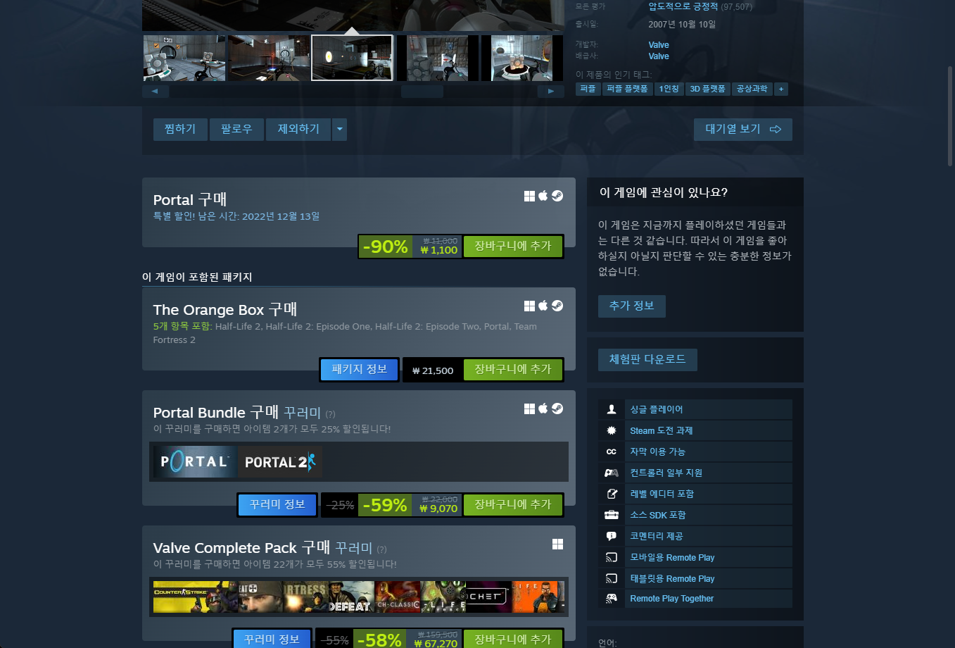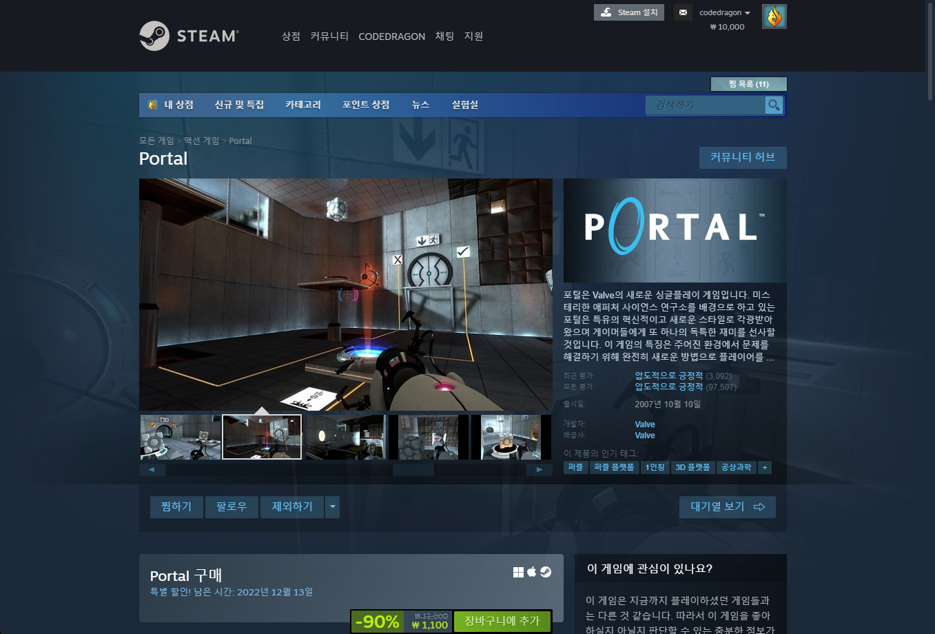 "Portal" - Steam 스팀 게임페이지 (기본 Base)