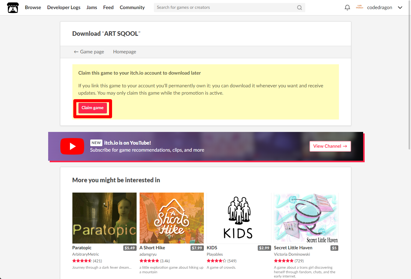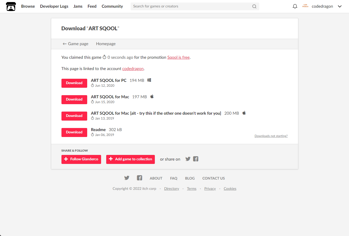 "ART SQOOL" 페이지에 있는 [Download or claim]을 클릭합니다.