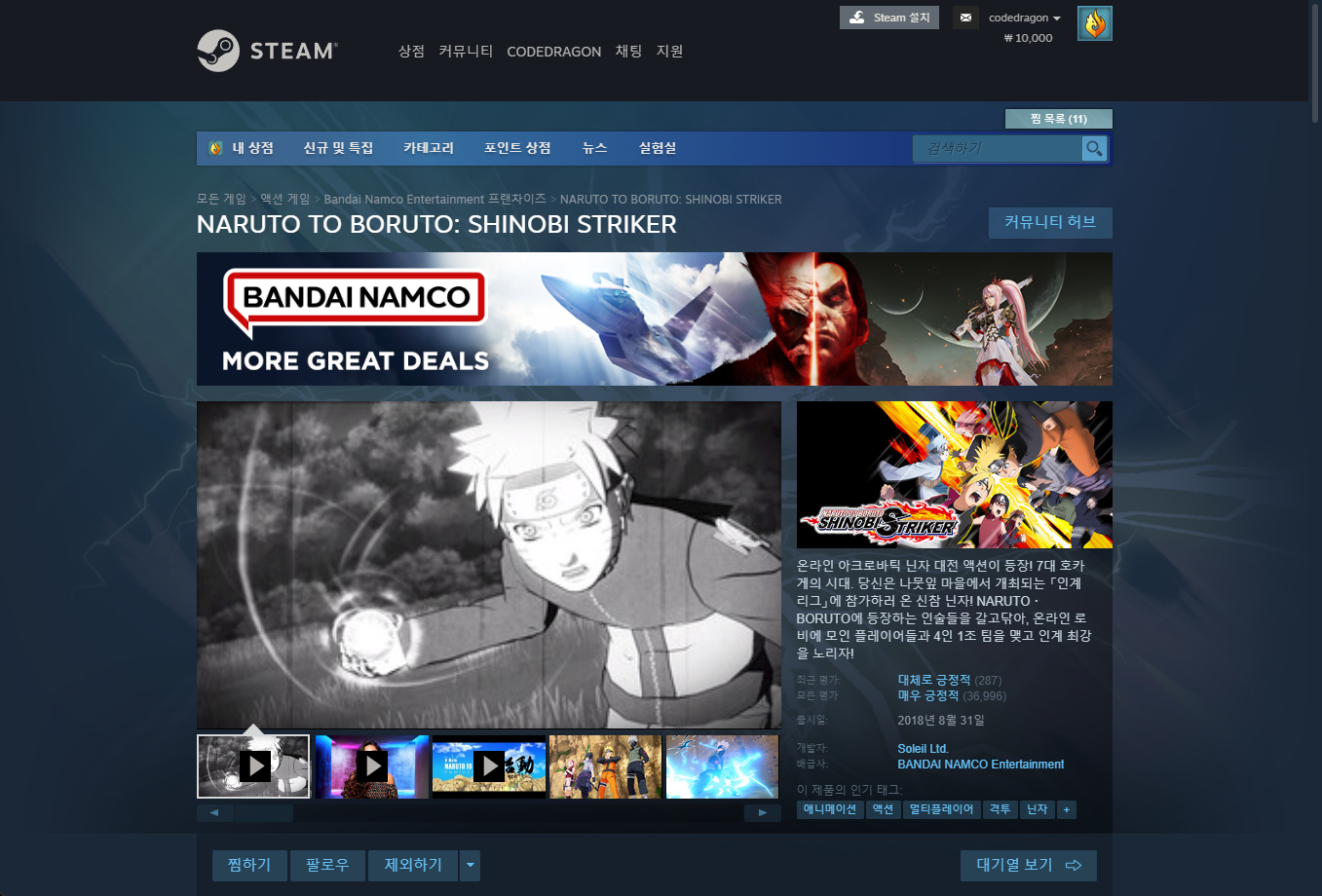 "NARUTO TO BORUTO: SHINOBI STRIKER" 게임페이지에 접속합니다.