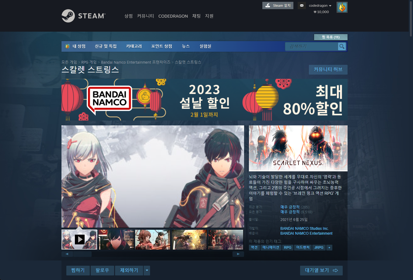 - "SCARLET NEXUS" Steam 스팀 게임 페이지