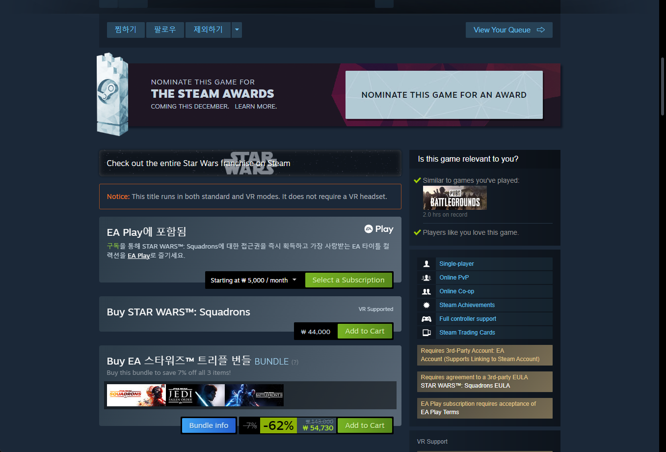 - "스타워즈: 스쿼드론" - Steam 스팀 게임 페이지