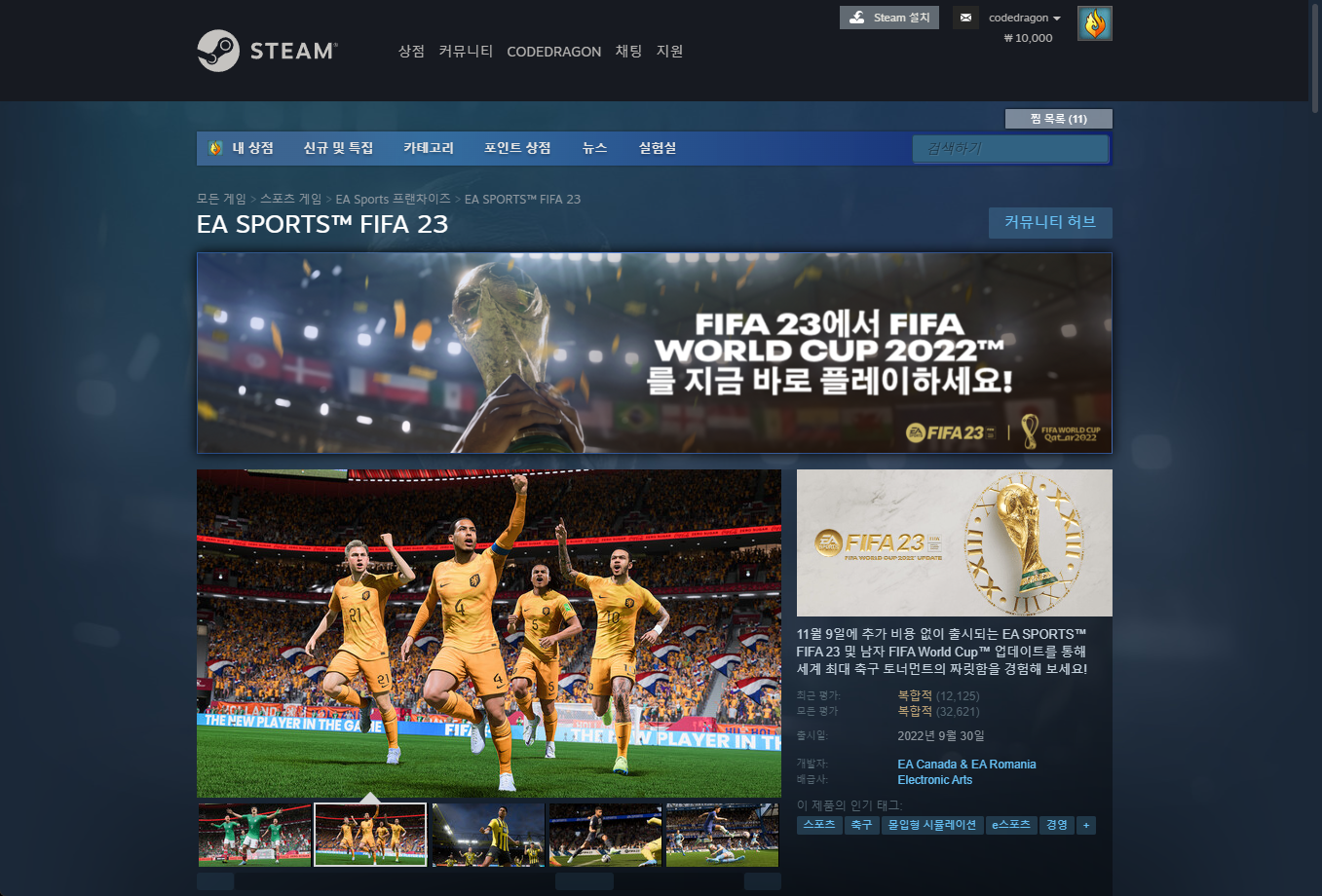 "EA SPORTS™ FIFA 23" 게임 페이지