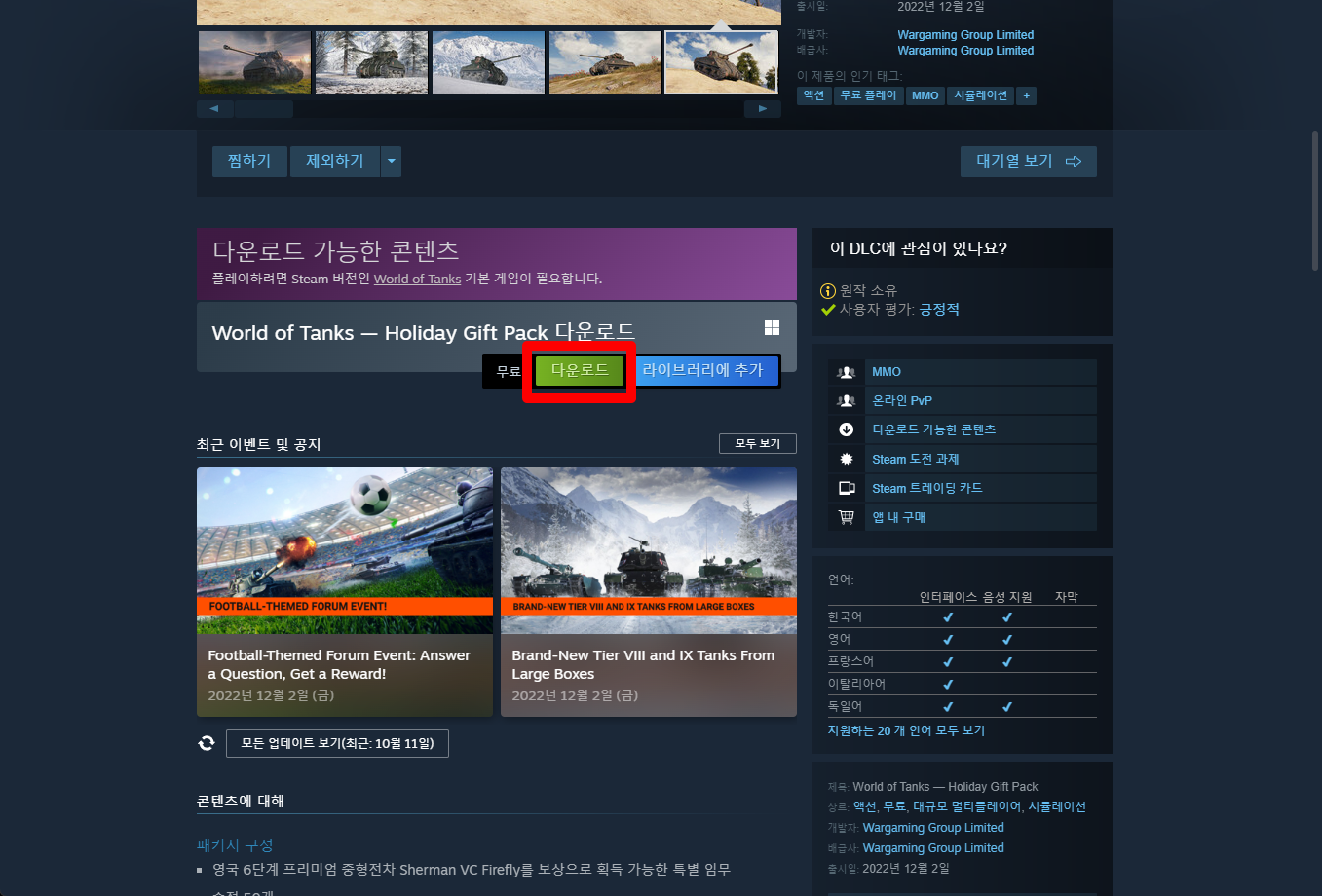 - "World of Tanks — Holiday Gift Packk" DLC 게임 받기