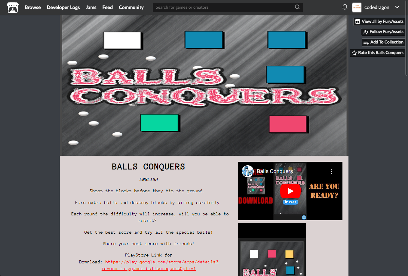 "Balls Conquers" 해당 항목에 있는 [Download] 버튼을 클릭하면 게임의 설치파일을 다운받을 수 있습니다.