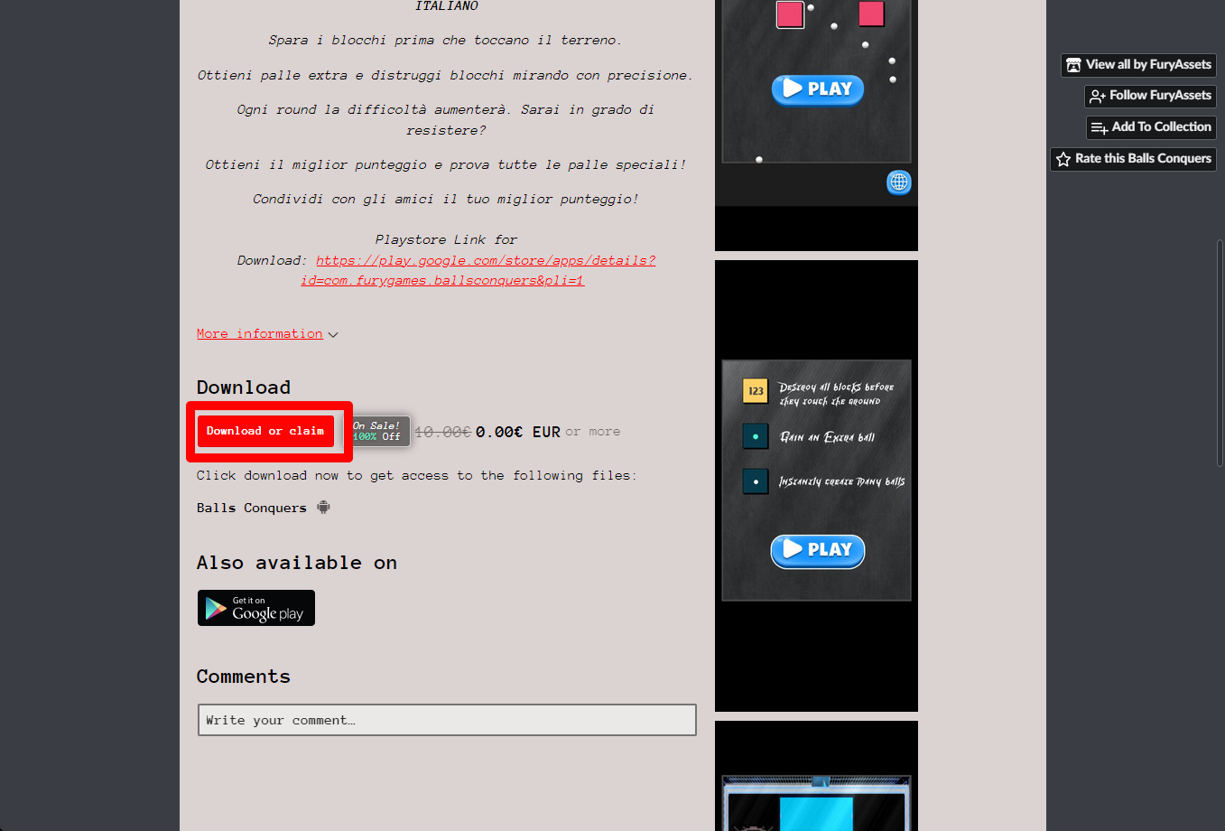 "Balls Conquers" 페이지를 내려서 [Download or claim]을 클릭합니다.