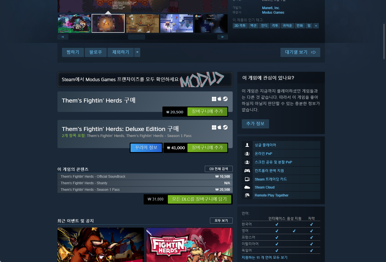- "Them's Fightin' Herds" - Steam 스팀 게임 페이지
