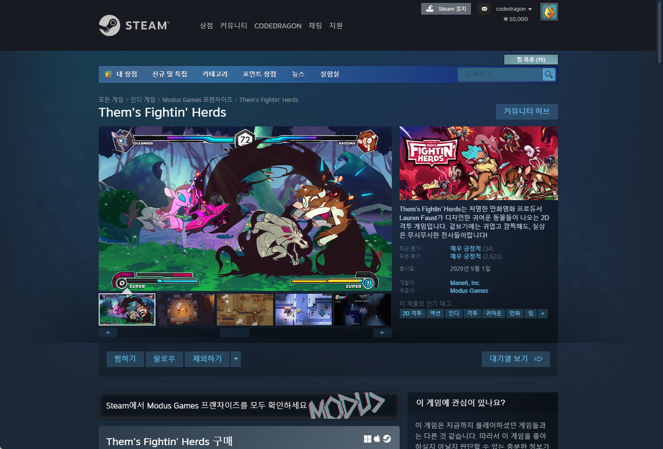 - "Them's Fightin' Herds" - Steam 스팀 게임 페이지