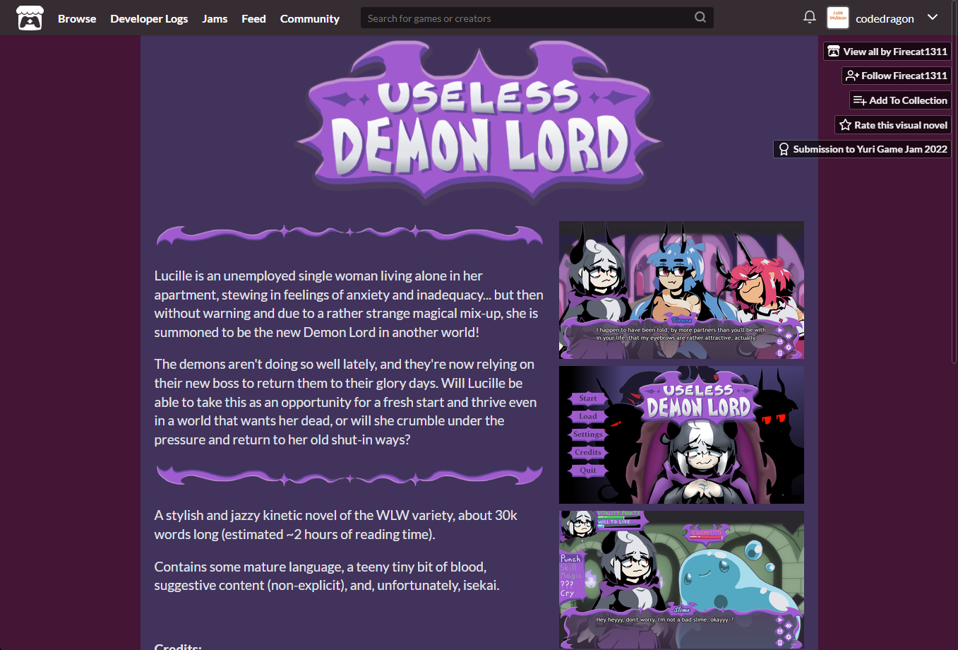 "Useless Demon Lord" 게임 페이지