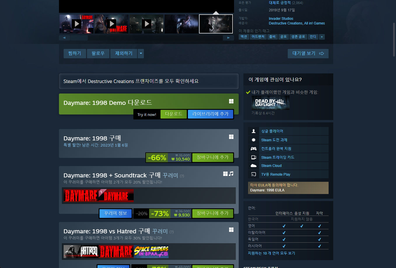 - "Daymare: 1998" - Steam 스팀 페이지