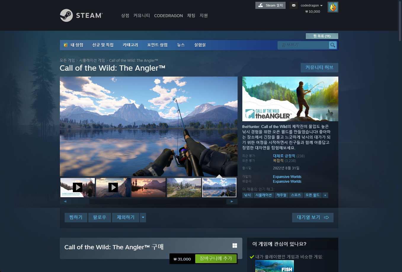 - "Call of the Wild: The Angler - Norway Reserve" DLC 게임 페이지 (DLC)