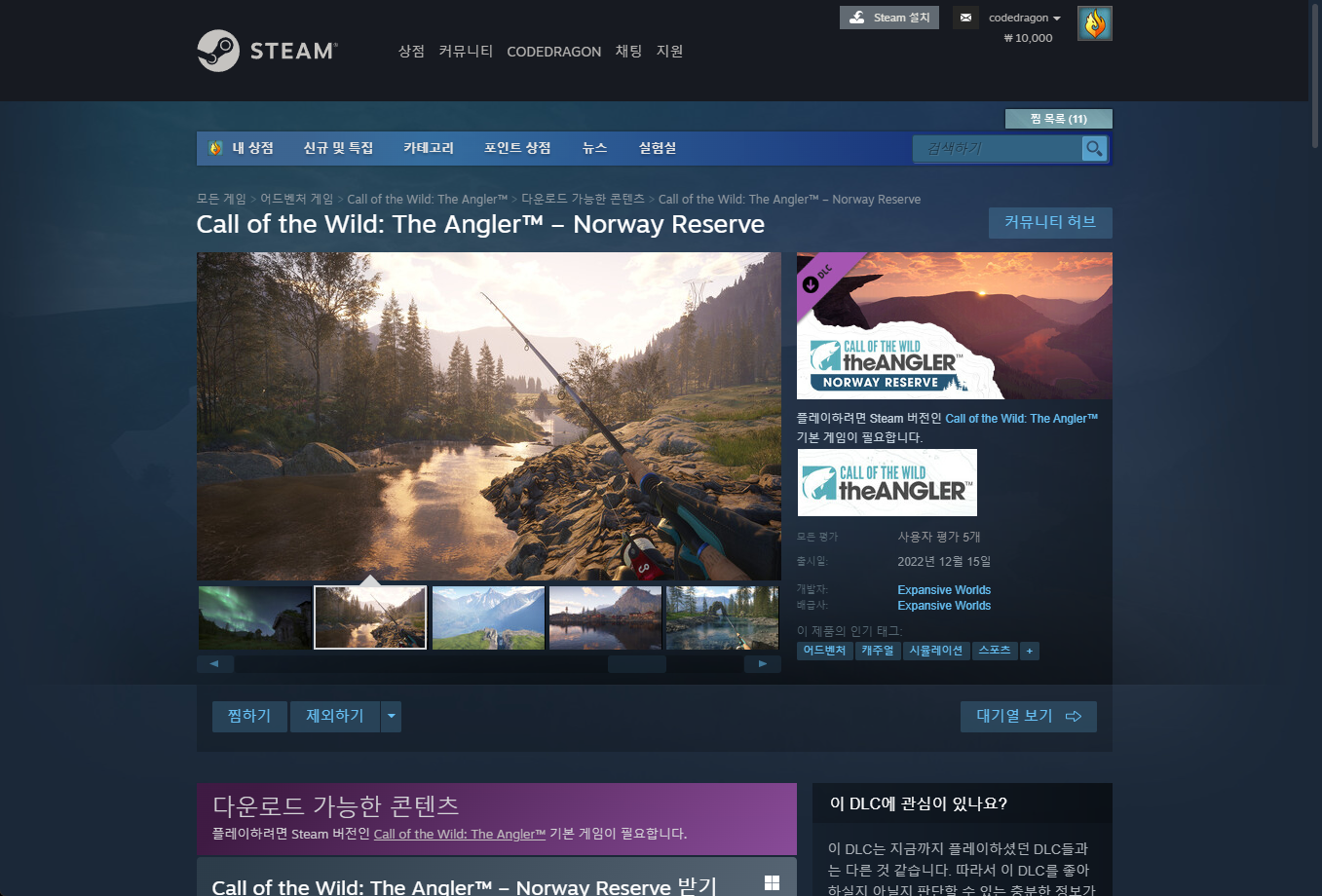 "Call of the Wild: The Angler - Norway Reserve" DLC 게임페이지에 접속합니다.