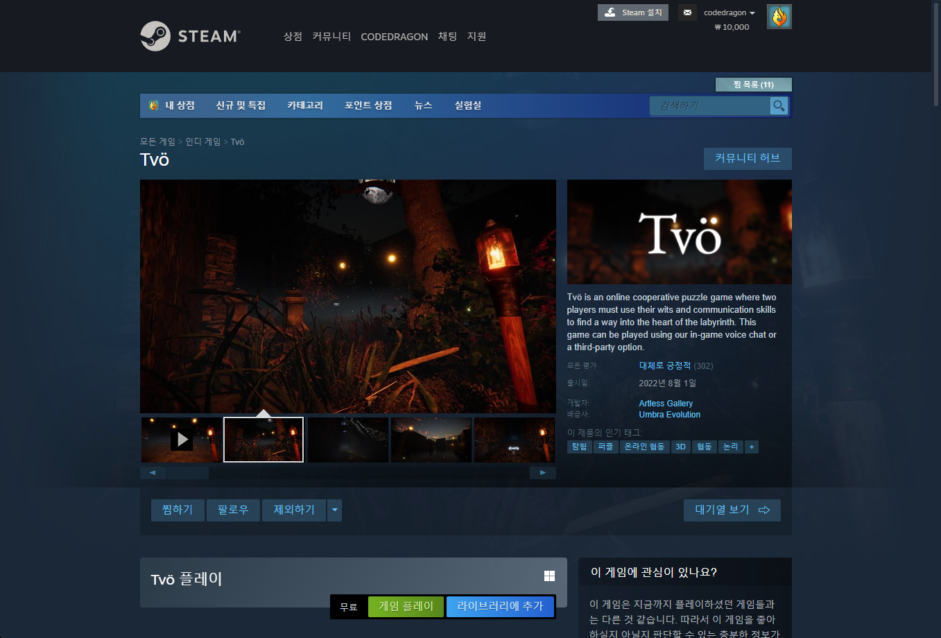 Tvö 무료 플레이 - 스팀 무료 게임 Steam FREE GAME