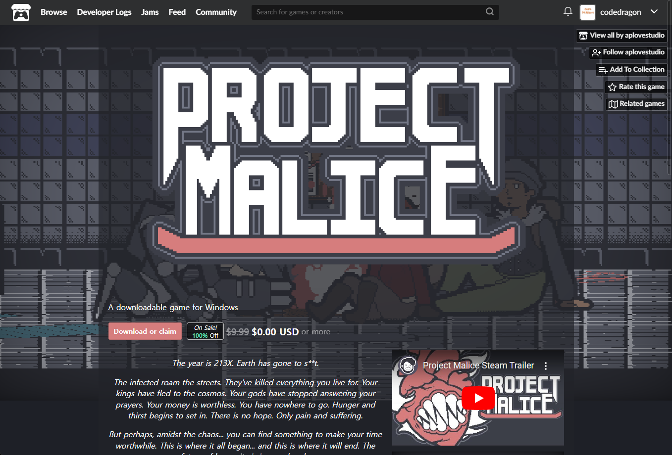 - "Project Malice" 게임 페이지
