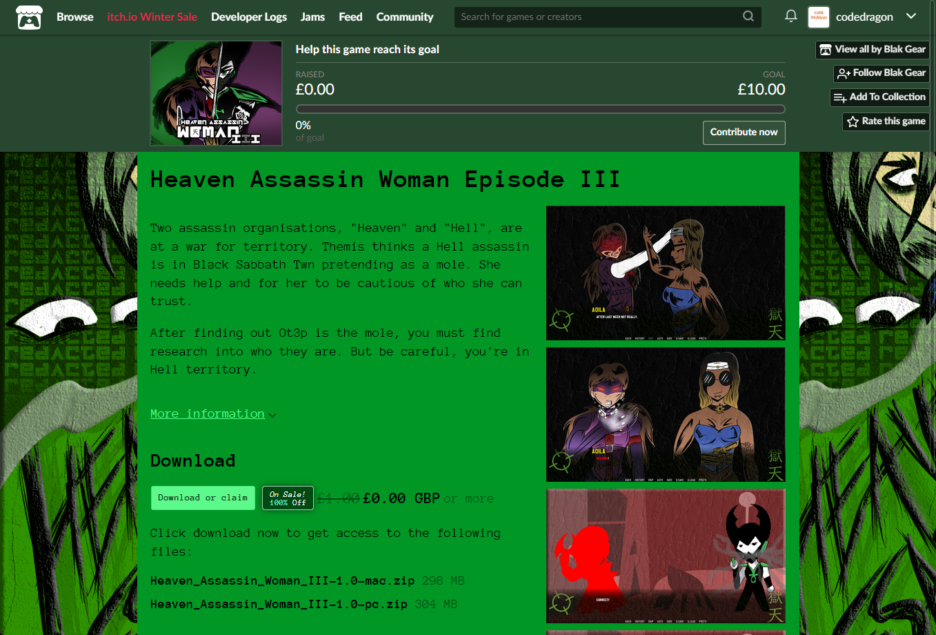 ₩1,366 -> ₩0(Free) Heaven Assassin Woman Episode III 무료로 받기 영구소장 - itch.io 잇치 닷 아이오 한시적 무료 소장하기