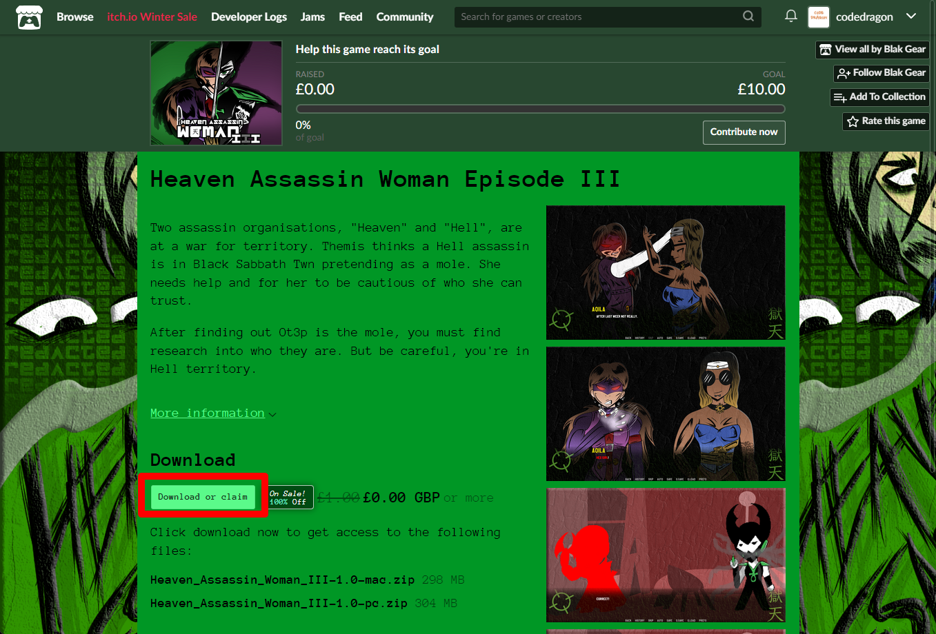 "Heaven Assassin Woman Episode III" 페이지에 있는 [Download or claim]을 클릭합니다.