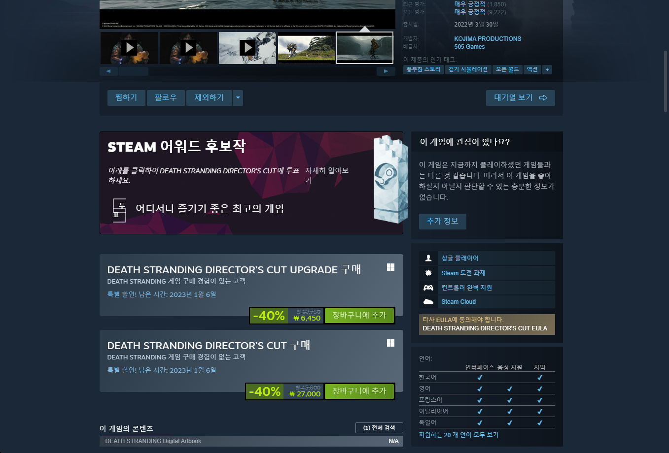 - "DEATH STRANDING DIRECTOR'S CUT" - Steam 스팀 게임 페이지