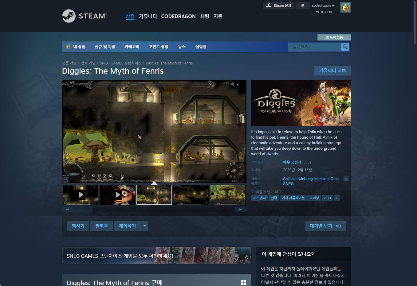 - "Diggles: The Myth of Fenris" - Steam 스팀 페이지