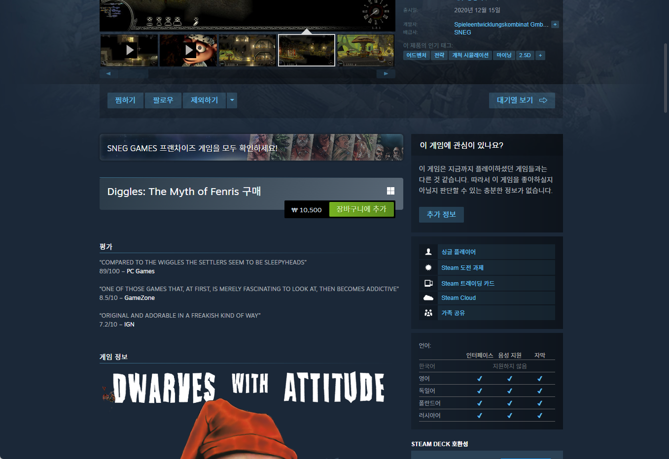 ₩10,500 → ₩0(FREE) Diggles: The Myth of Fenris 디글스: 미쓰 오브 펜리스 - gog 지오지닷컴 한시적 무료게임 for FREE