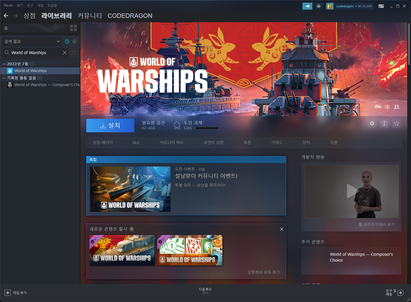 "World of Warships Year of the Rabbit Camouflage Collection" 해당 DLC를 받기 위해서는 베이스게임(World of Tanks)을 보유하고 있거나 구매해야 합니다. 베이스게임을 받는 방법은 이전에 받은 영상있으므로 확인하시기 바랍니다.