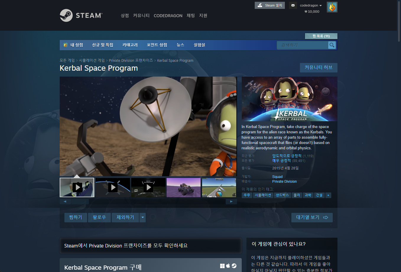 - "Kerbal Space Program" 구매내역 확인하기 - 계정