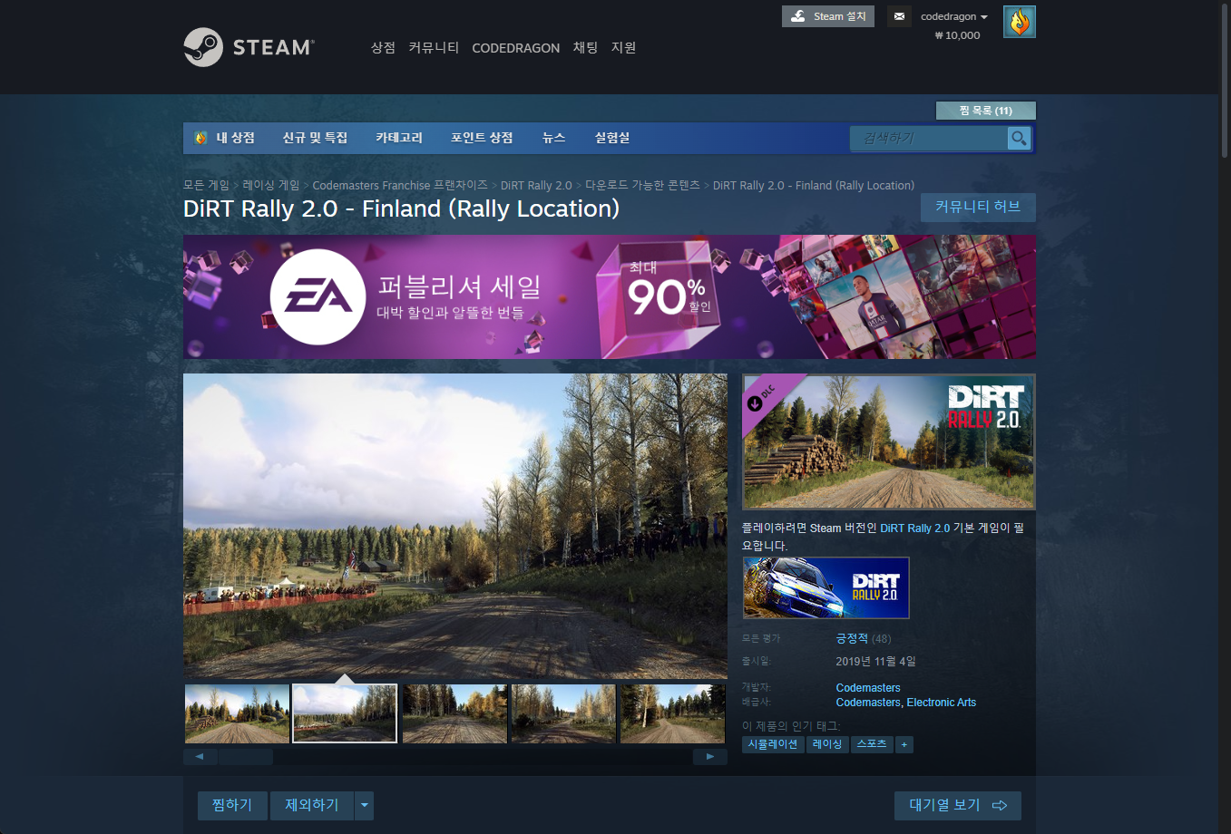 "DiRT Rally 2.0 - Finland (Rally Location)" DLC 게임페이지에 접속합니다.
