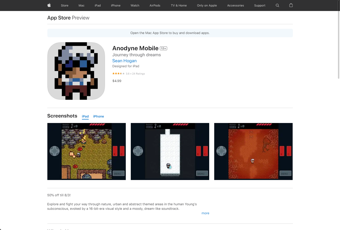 - "Anodyne Mobile " 게임 페이지 - 아이폰