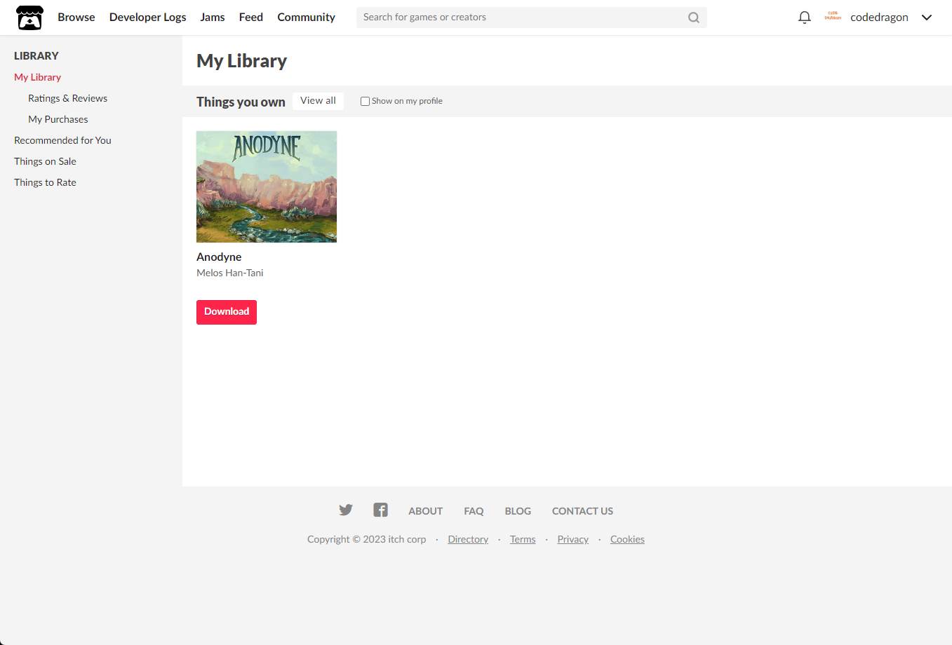 "Anodyne" 파일 다운로드 페이지에 나오는 메뉴에서 [My library]를 클릭합니다.