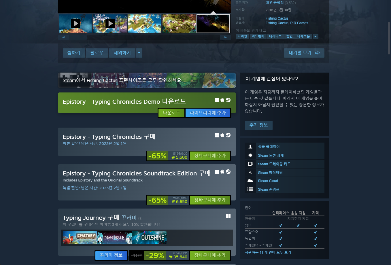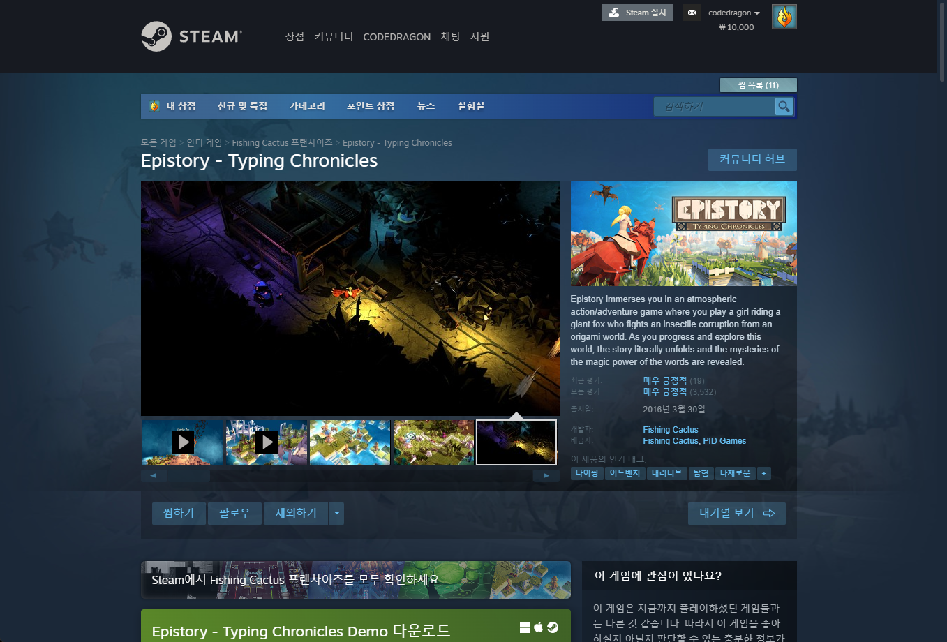 - "Epistory - Typing Chronicles" 한시적 무료게임 구매하기