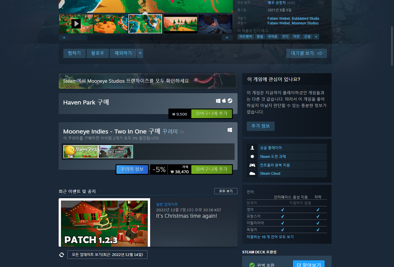₩9,500 -> ₩0(FREE) Haven Park 헤이븐 파크 - gog 지오지닷컴 한시적 무료게임 for FREE