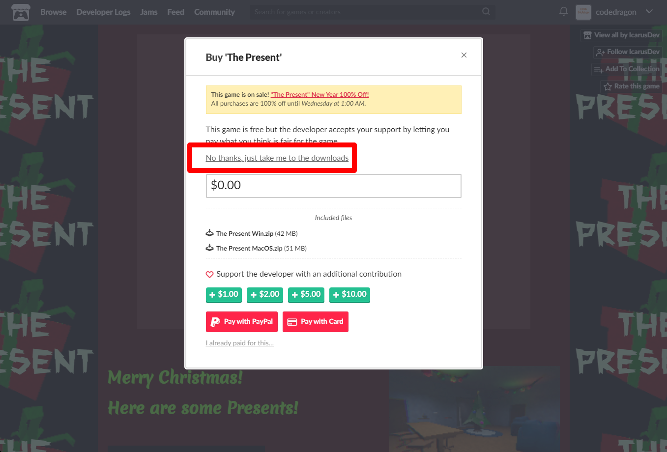 "The Present" 구매창에서 [No thanks, just take me to the downloads] 링크를 클릭합니다.
