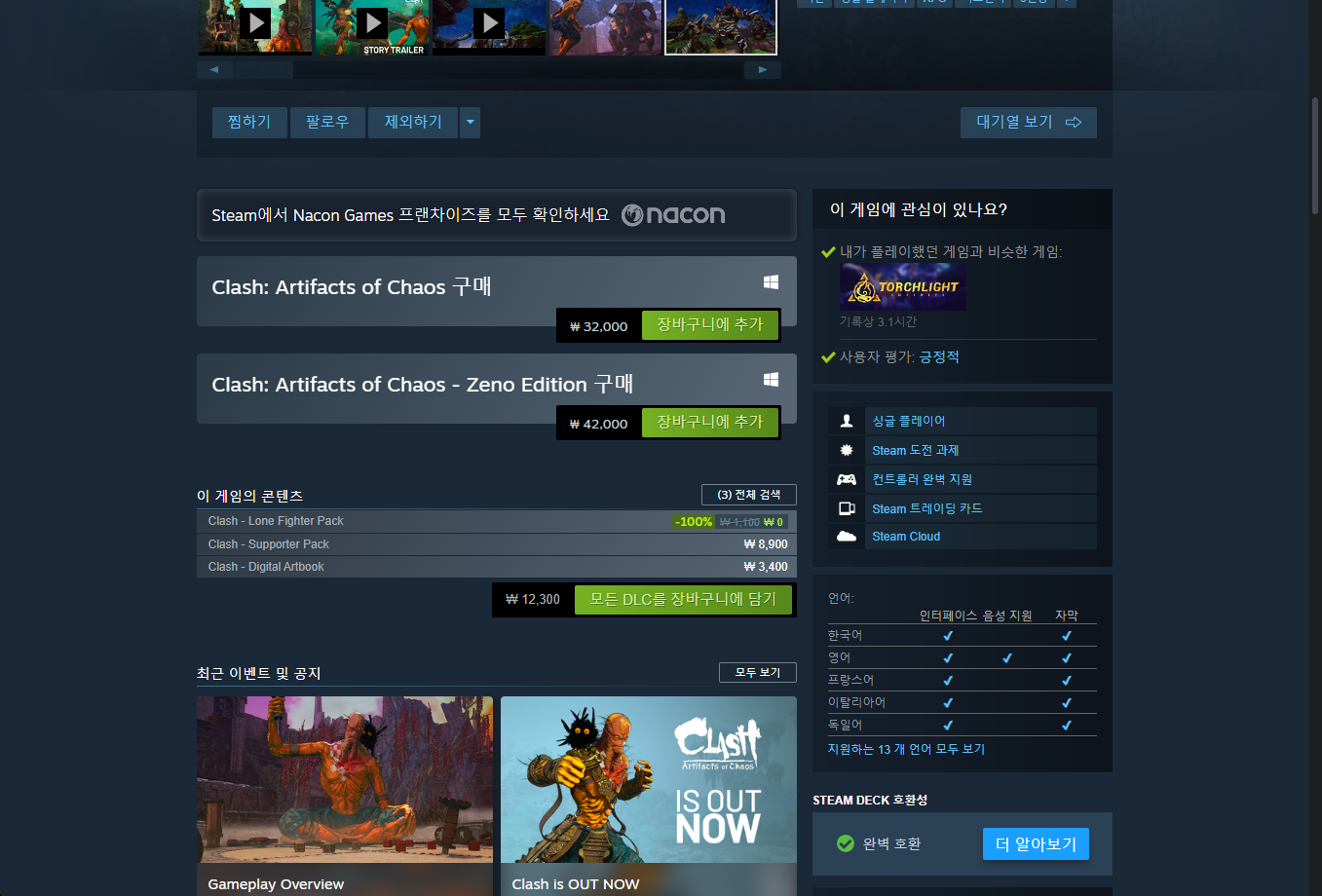 "Clash - Lone Fighter Pack" 해당 DLC를 받기 위해서는 베이스게임(Clash: Artifacts of Chaos)을 보유하고 있거나 구매해야 합니다.