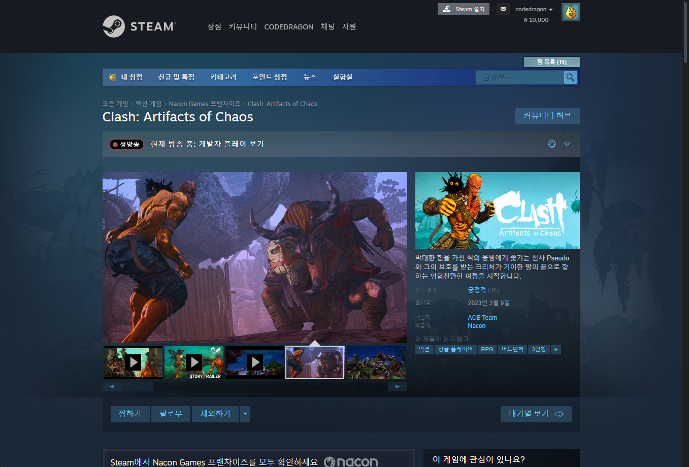 - "Clash: Artifacts of Chaos" 게임 페이지 (Base)