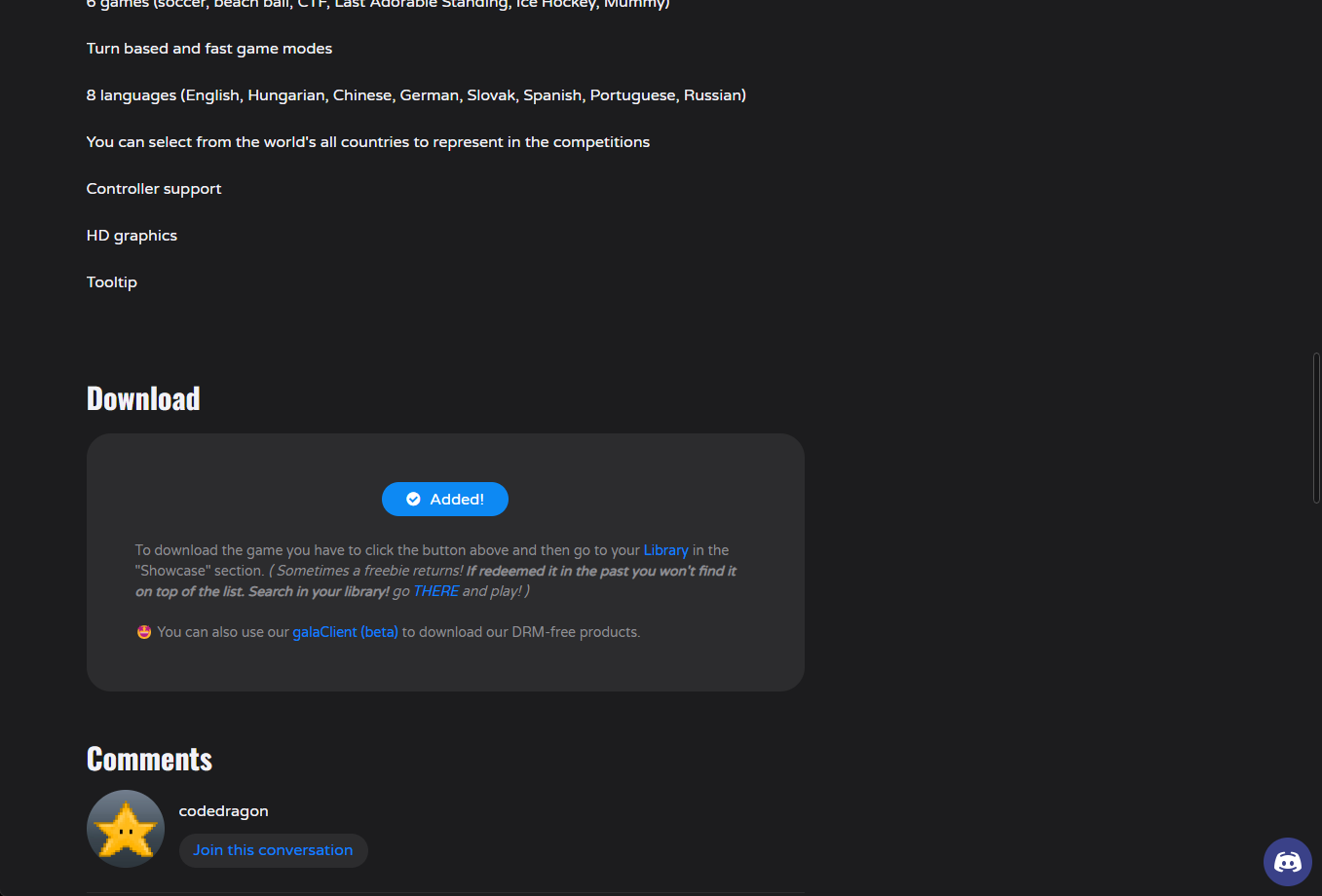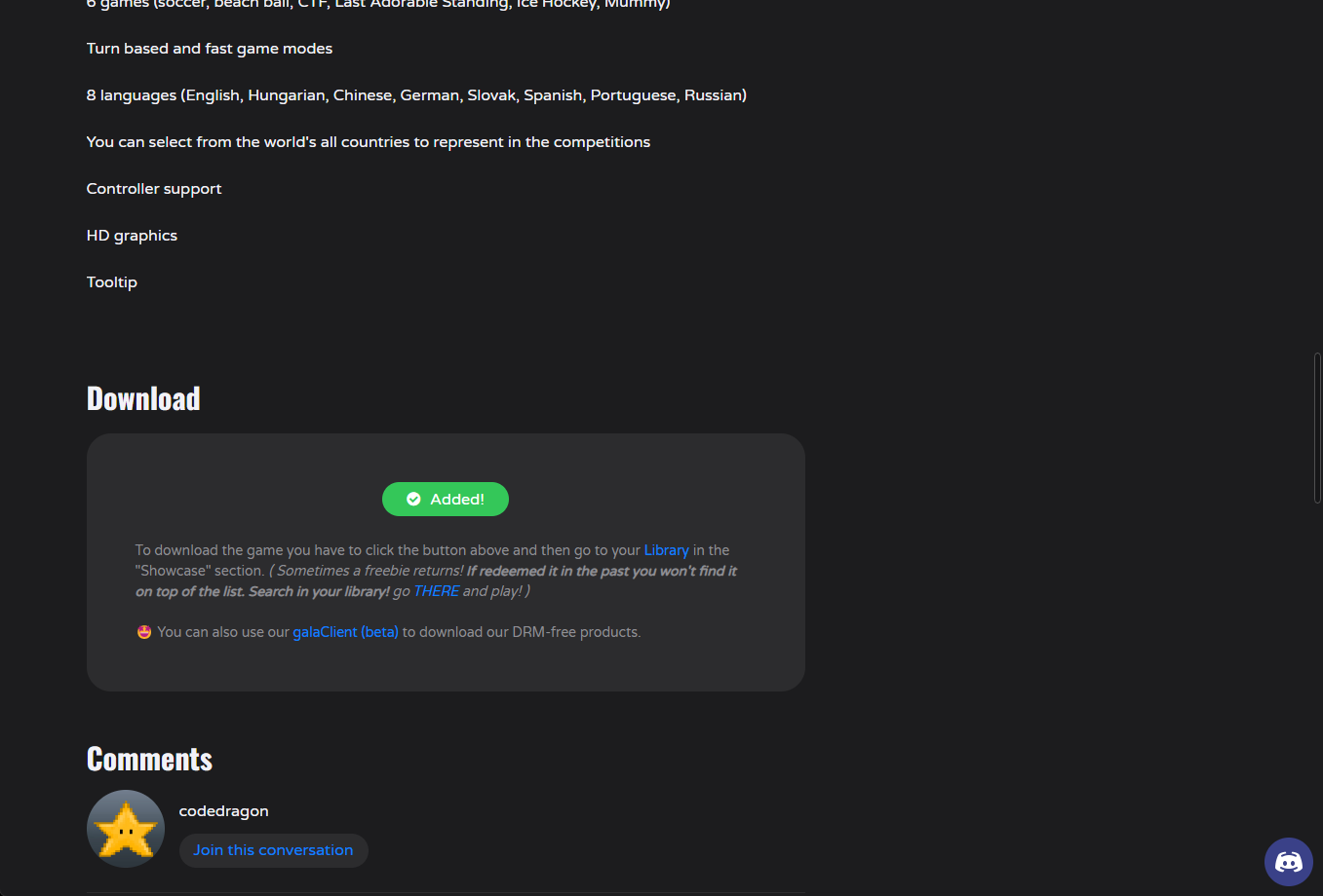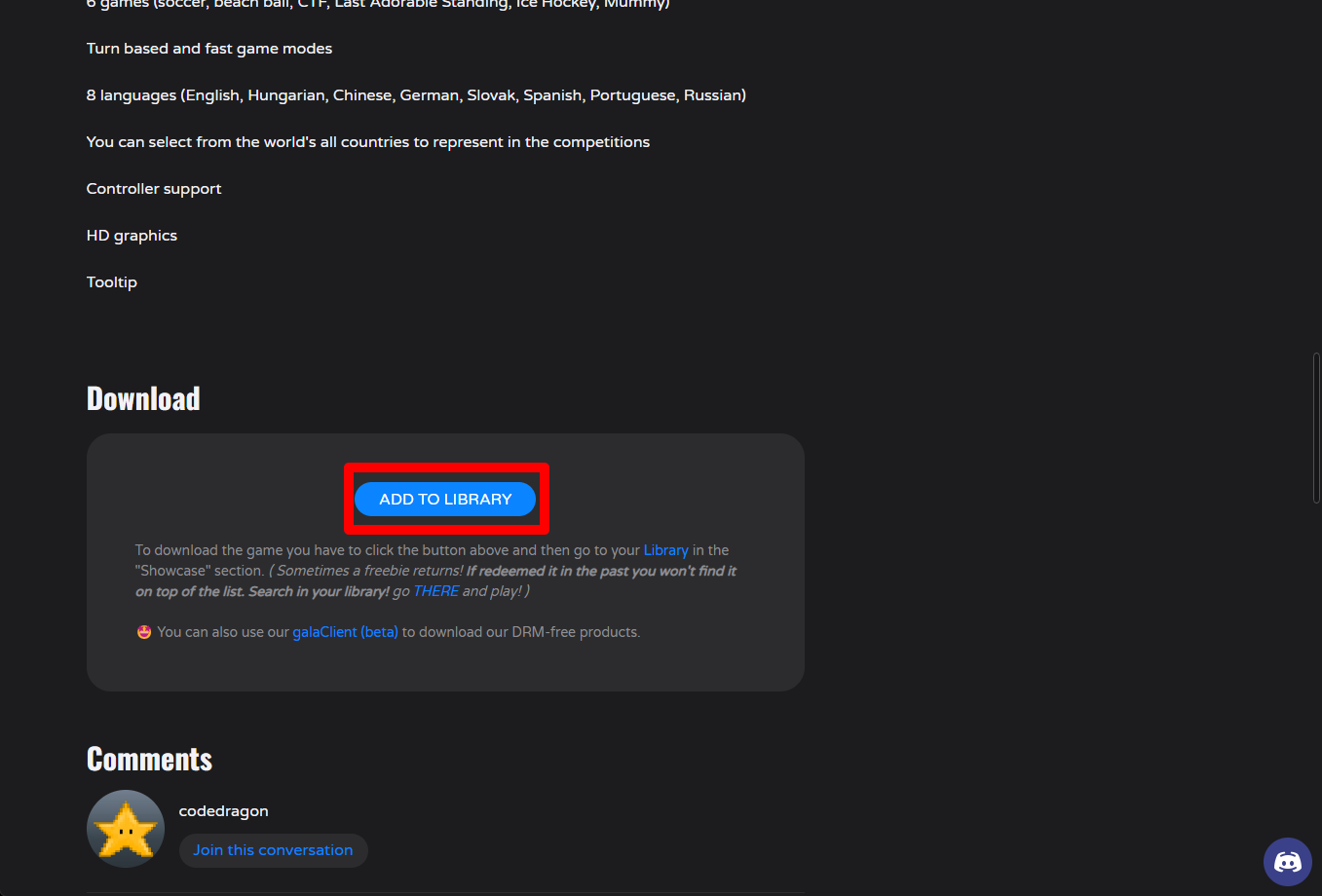 "Adorables" 게임 페이지를 내려 [ADD TO LIBRARY]를 클릭합니다.