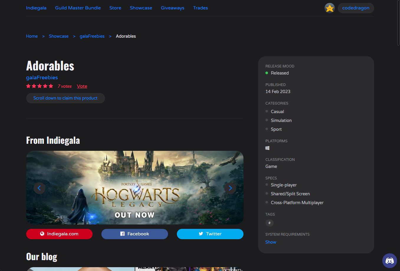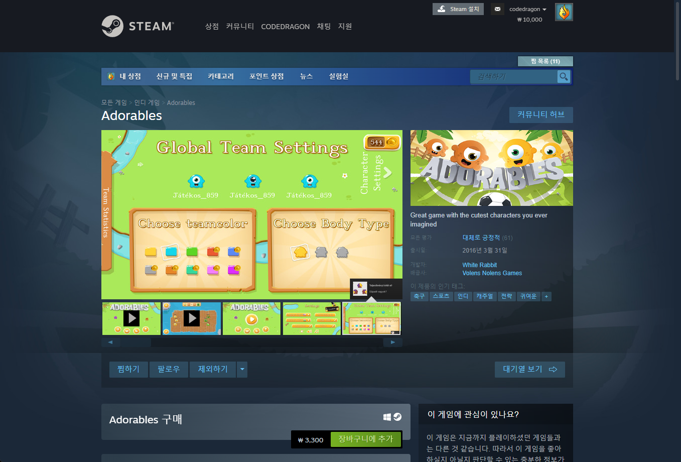 ₩3,300 -> ₩ 0(Free) Adorables 어도러블 무료 - 인디갈라 indiegala 무료 소장 기회 기간한정 indiegala FREE GAME, Limited time
