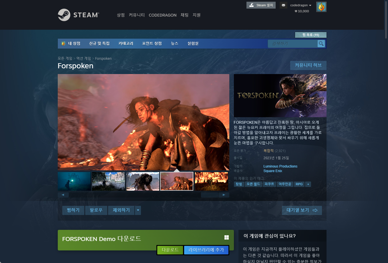 "Forspoken" 게임 페이지 (base game)
