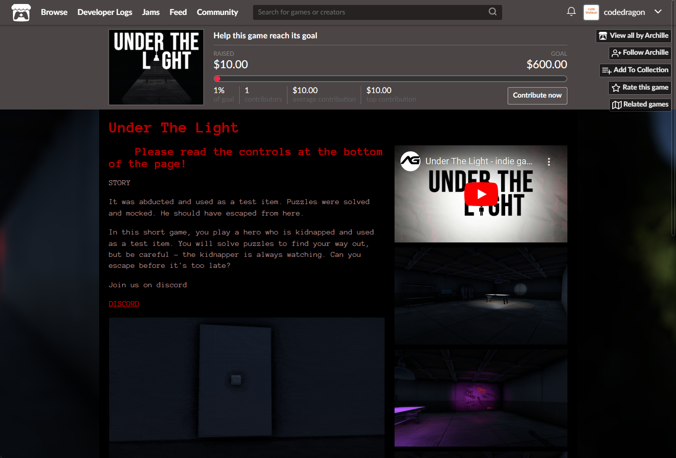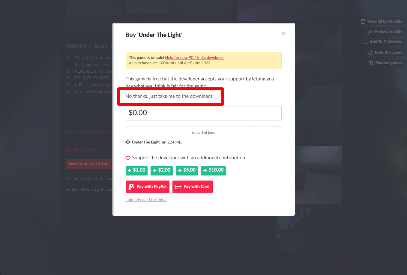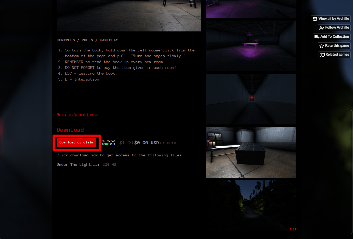 "Under The Light" 해당 항목에 있는 [Download] 버튼을 클릭하면 게임의 설치파일을 다운받을 수 있습니다.