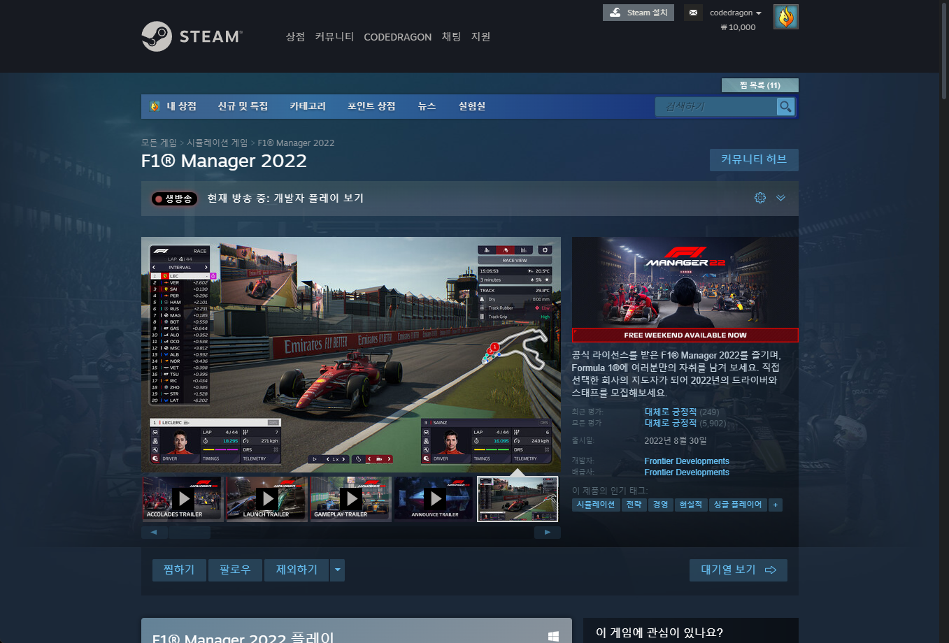 - "F1 Manager 2022" Steam 스팀 게임 페이지