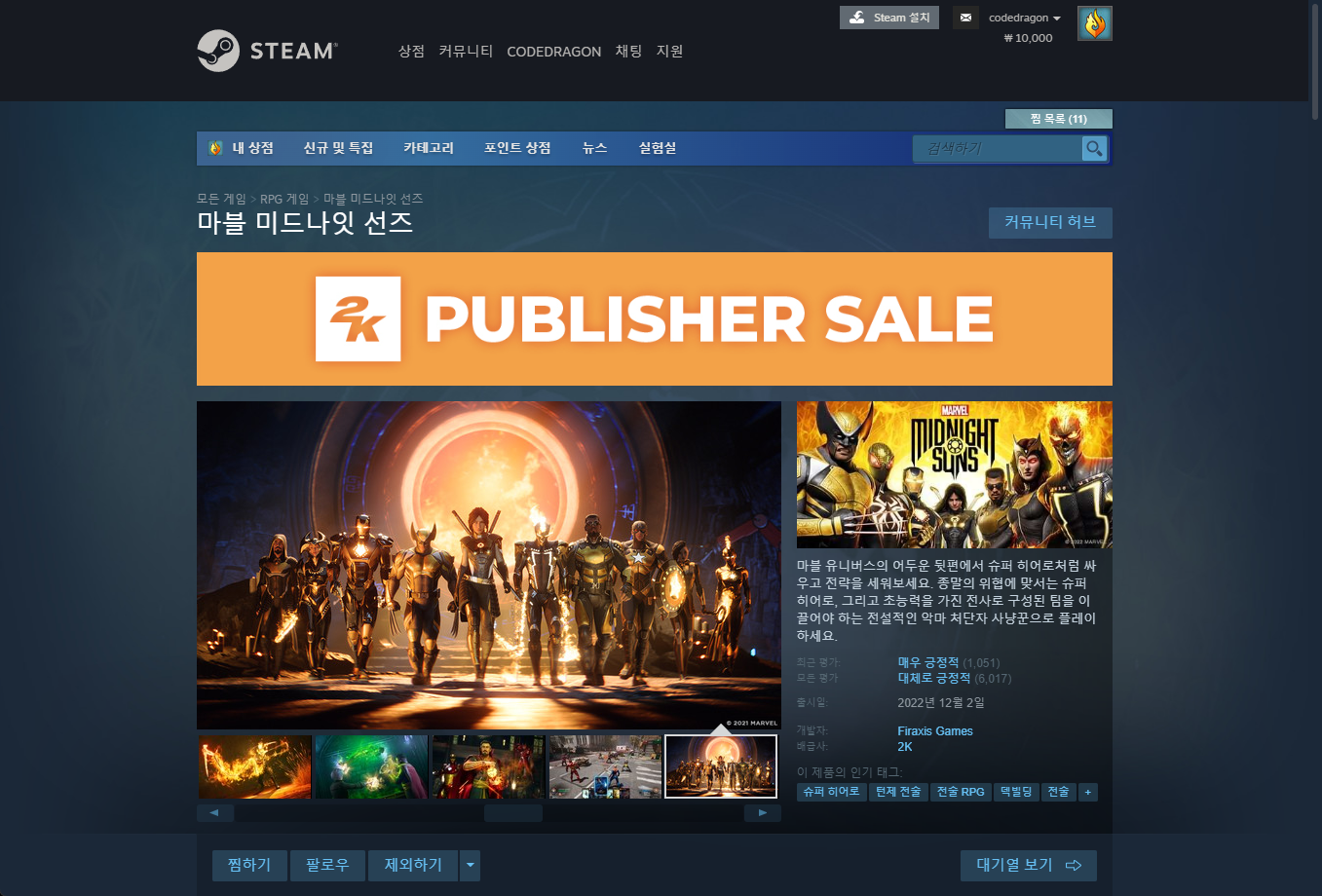 "Marvel's Midnight Suns" Steam 스팀 게임 페이지