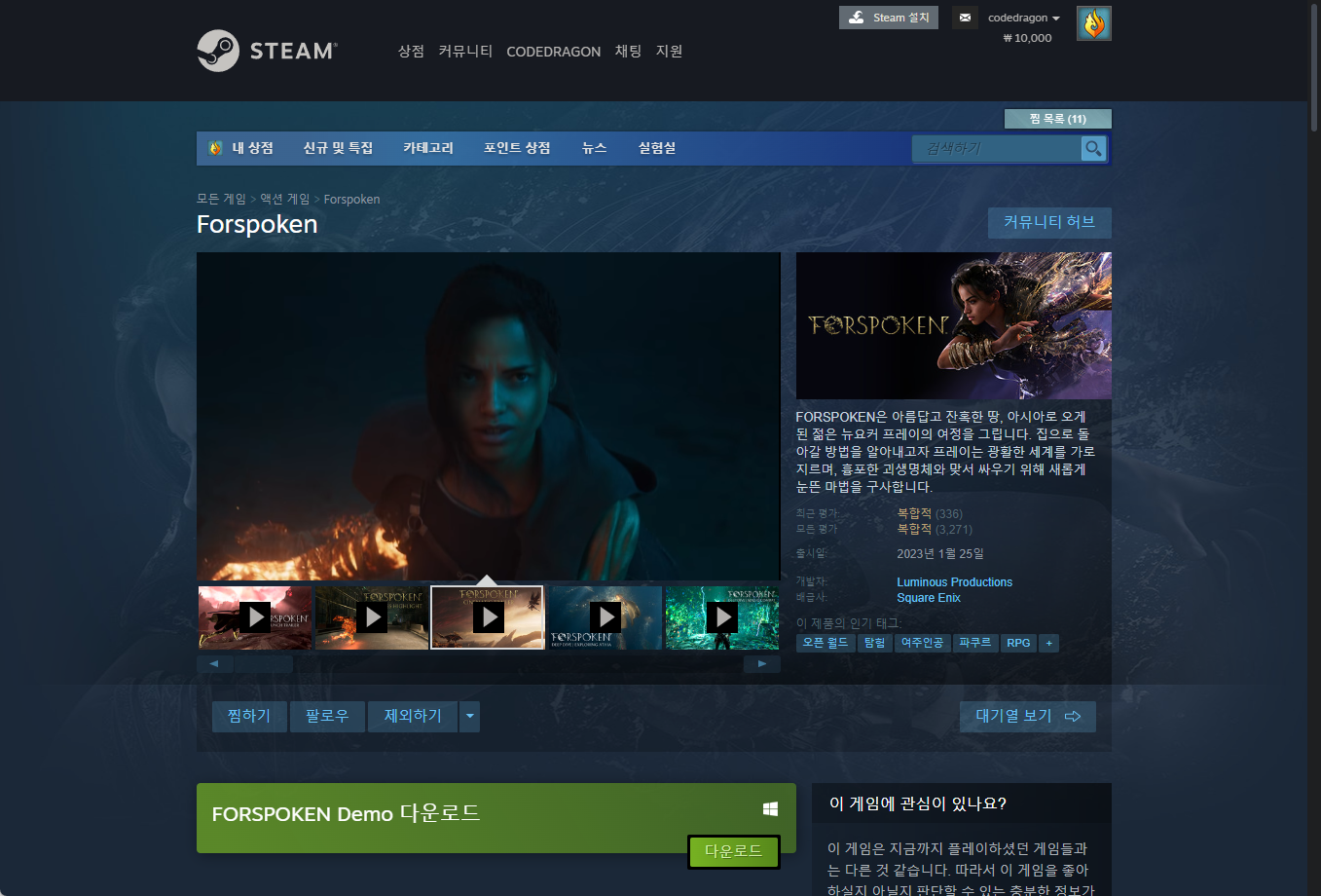 -100% -> ₩0(FREE) Forspoken Covet Nails DLC 포스포큰 코벳 네일스 확장팩 무료로 받기 영구소장; 스팀 Steam 한시적 무료 영구소장 Temporary free of