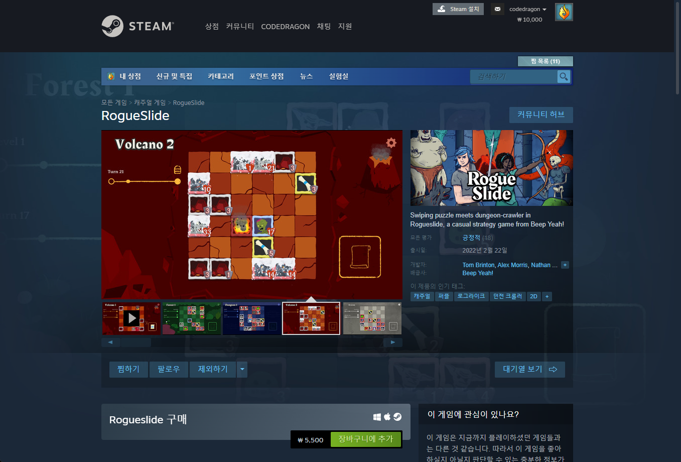 - "RogueSlide" 나의 게임 라이브러리 확인