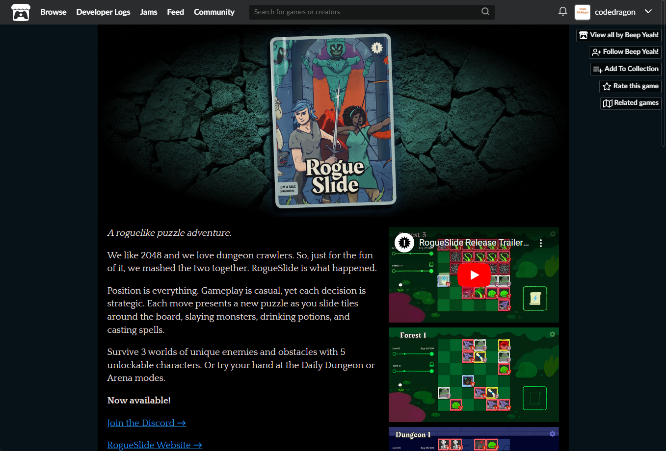 "RogueSlide" 해당 항목에 있는 [Download] 버튼을 클릭하면 게임의 설치파일을 다운받을 수 있습니다.