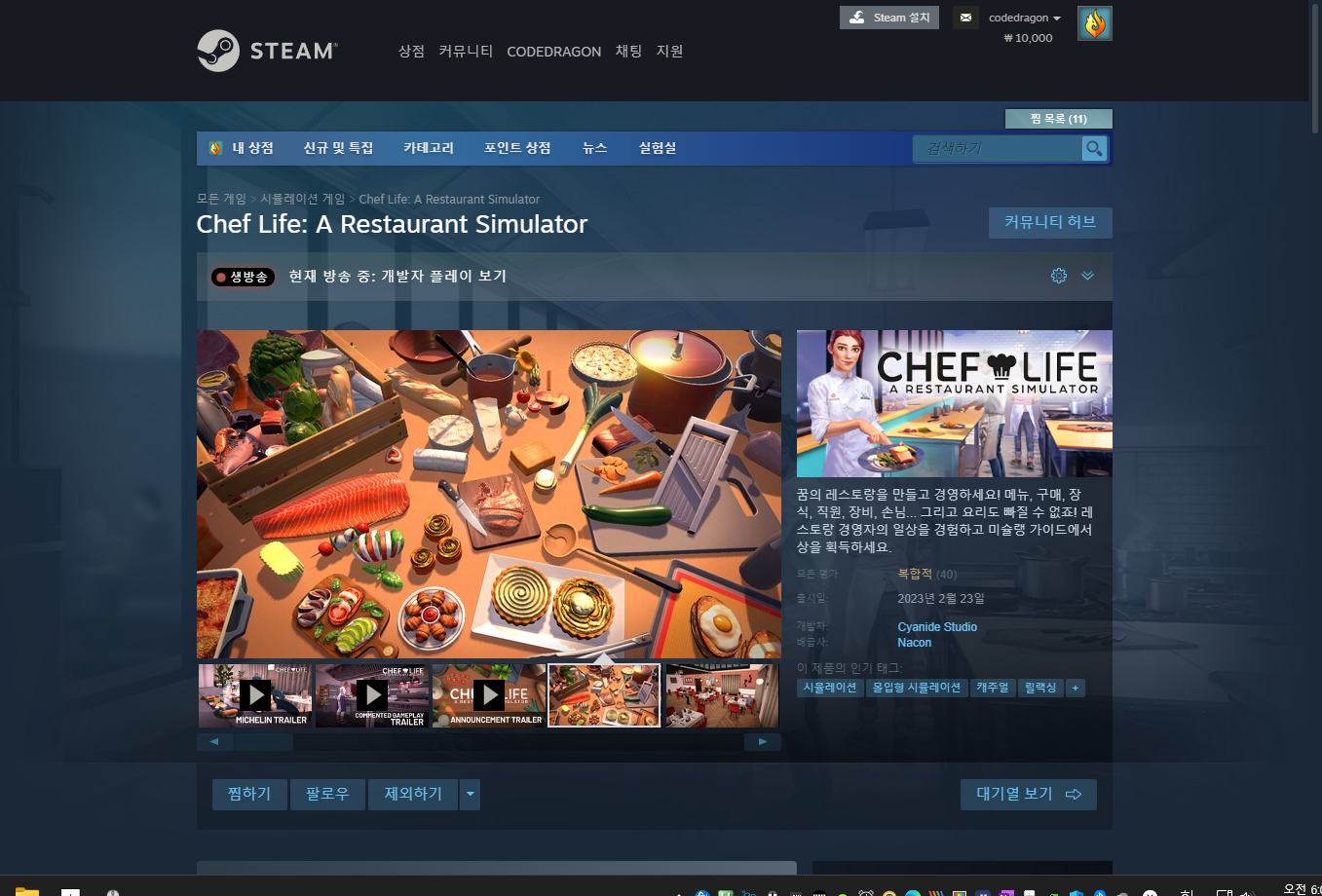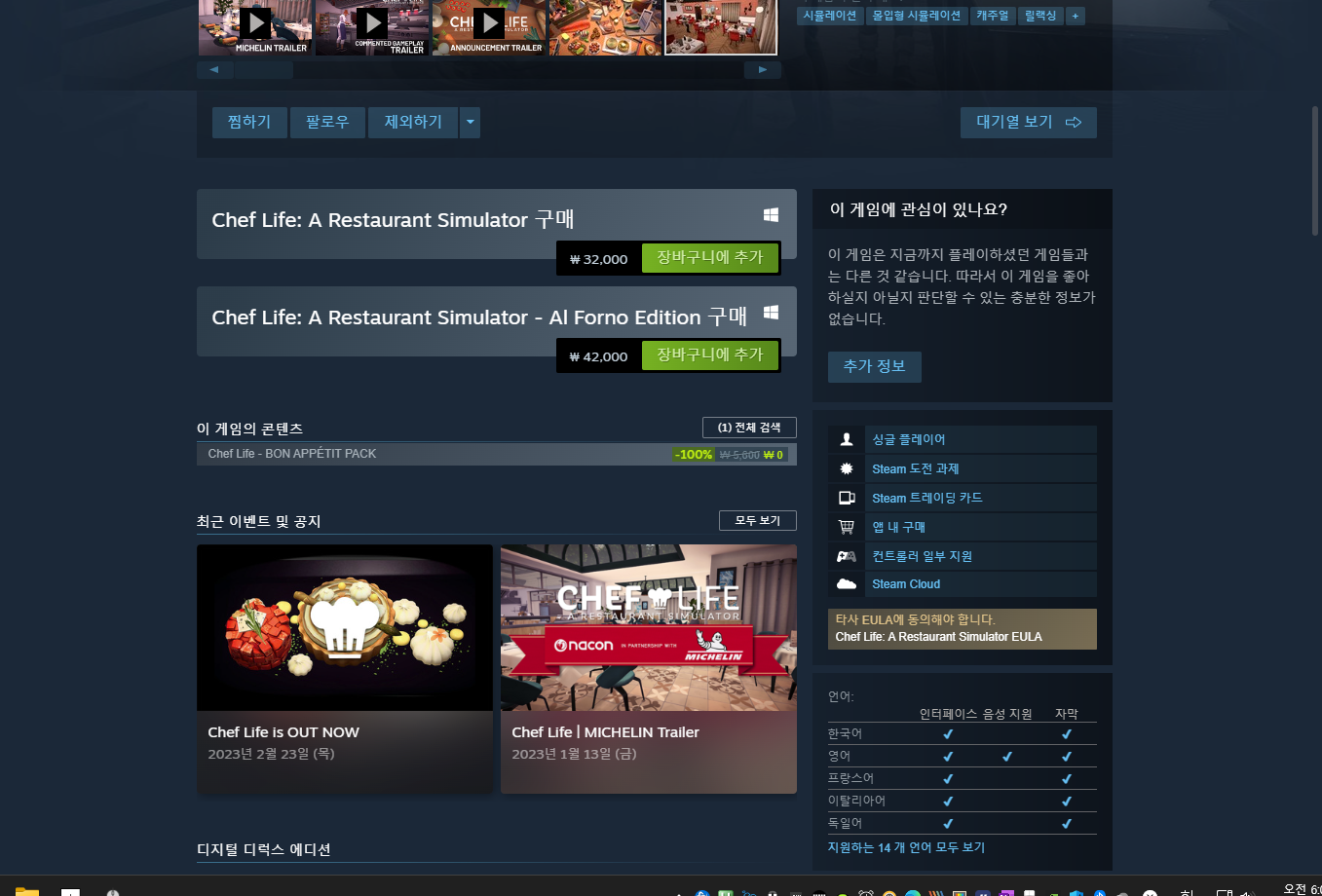 "Chef Life - BON APPÉTIT PACK" DLC 게임페이지에 접속합니다.