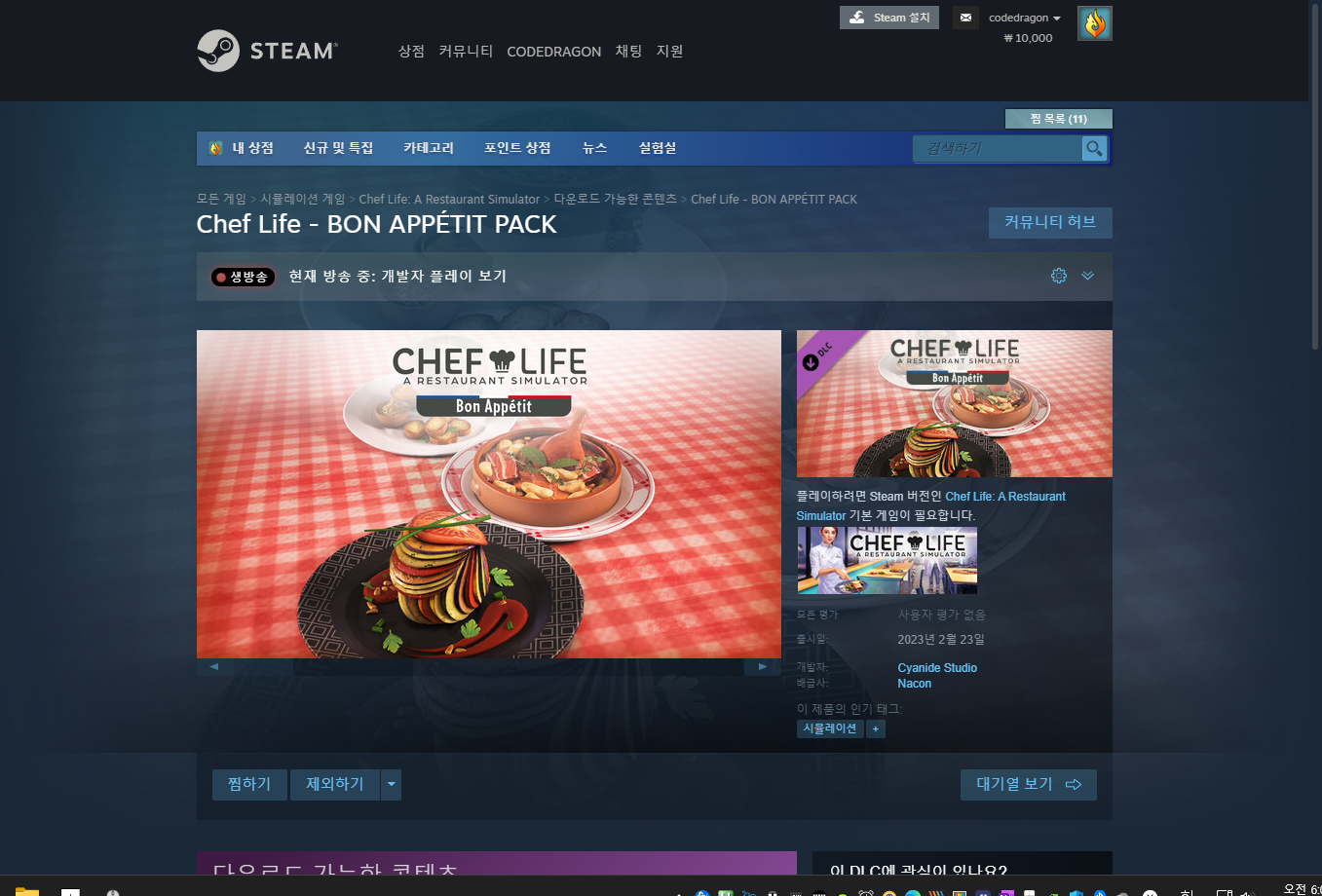 "Chef Life - BON APPÉTIT PACK" DLC 게임페이지에 접속합니다.