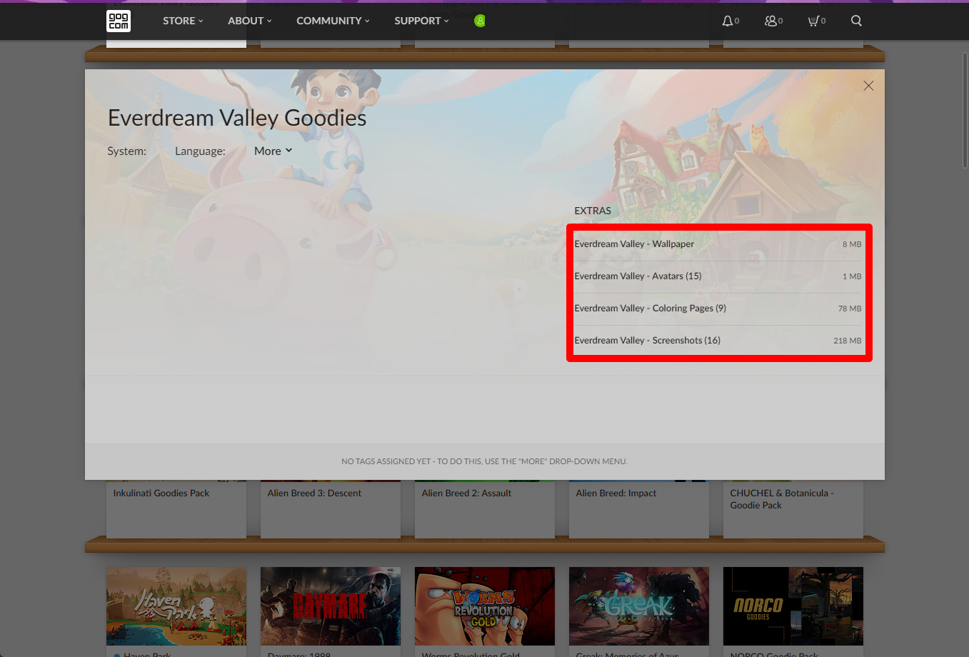 - "Everdream Valley Goodies" 게임 라이브러리 확인
