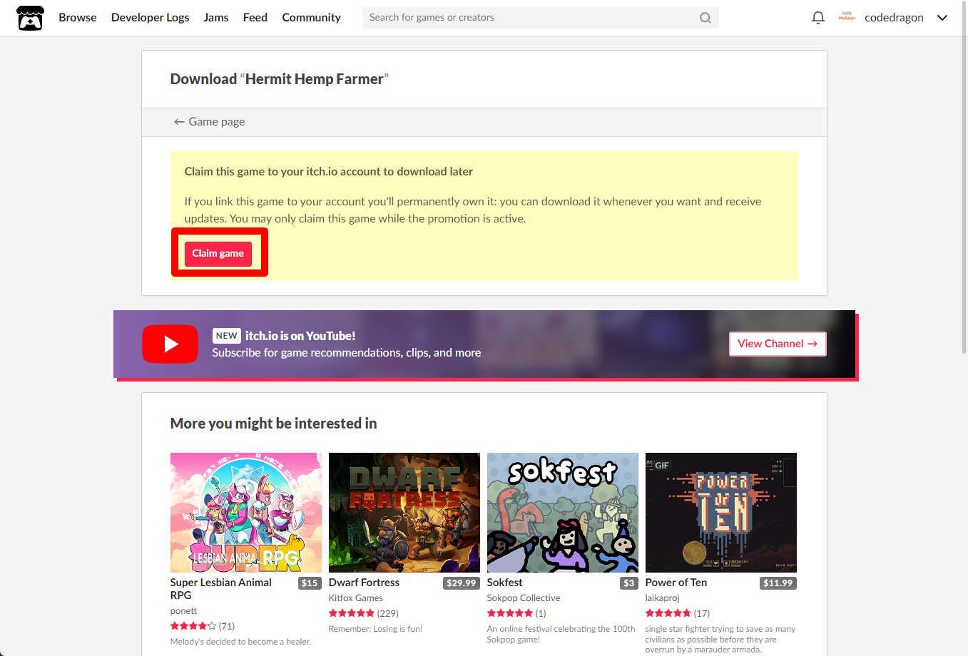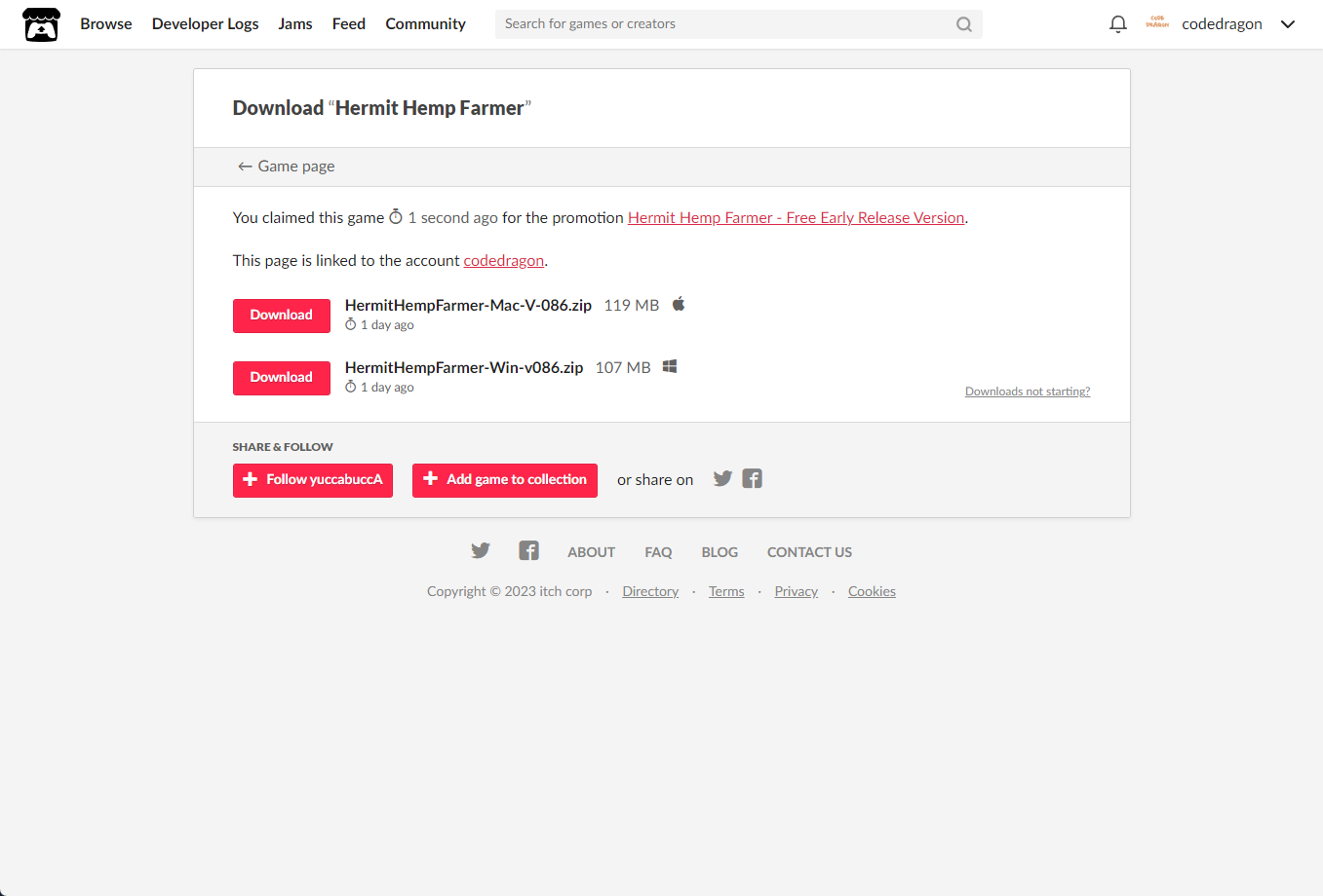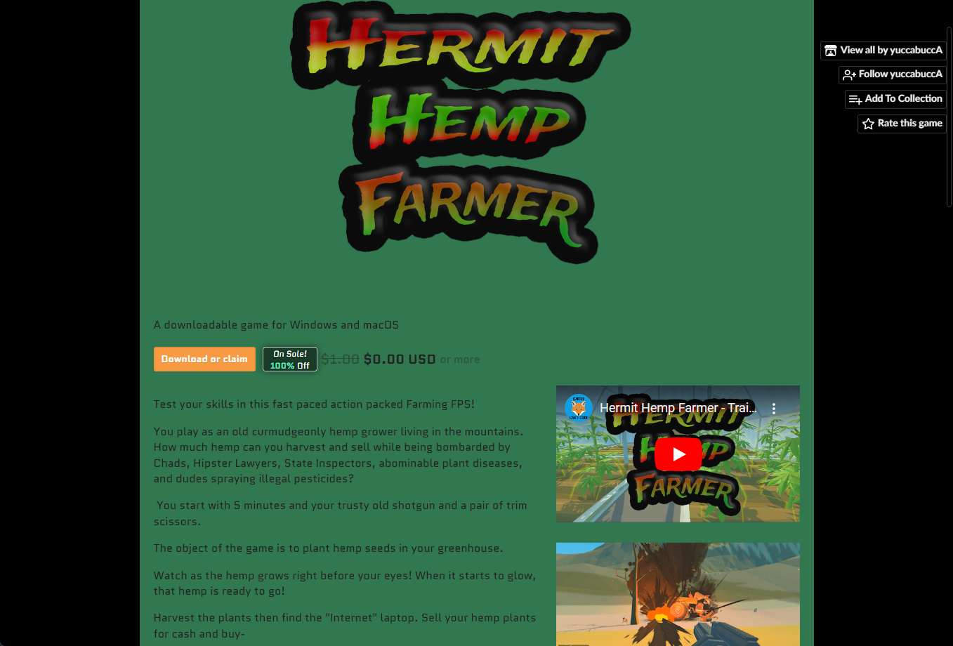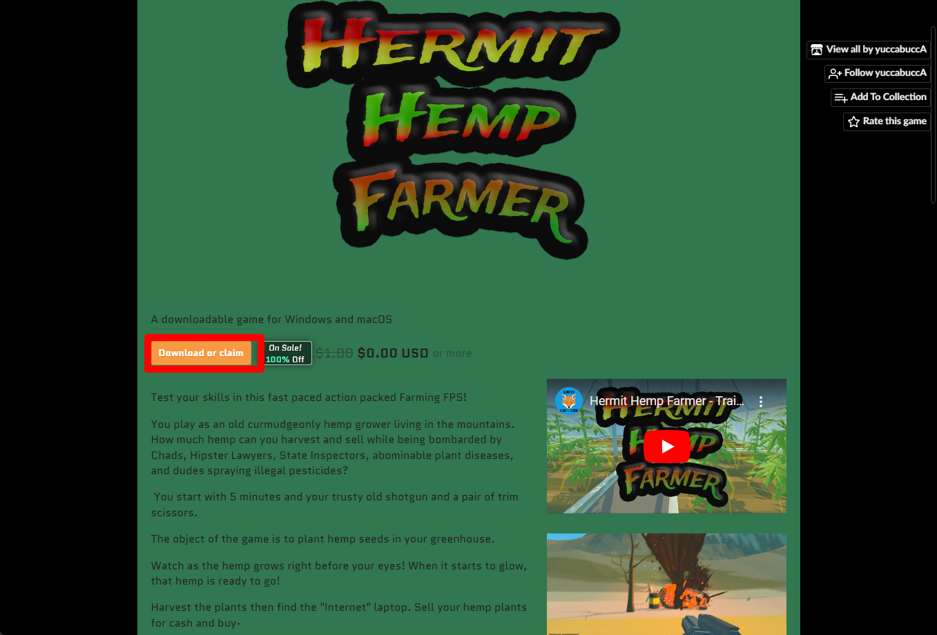 "Hermit Hemp Farmer" 페이지에 있는 [Download or claim]을 클릭합니다.